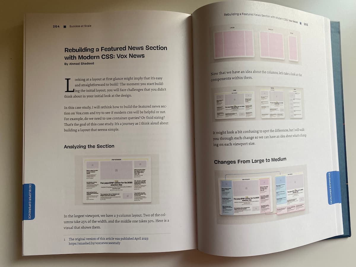 Addy Osmani asked if it's okay to feature my article Rebuilding a featured news section with modern CSS: Vox news in a new book he is working on. The book title is "Success at Scale" and published by Smashing Magazine.