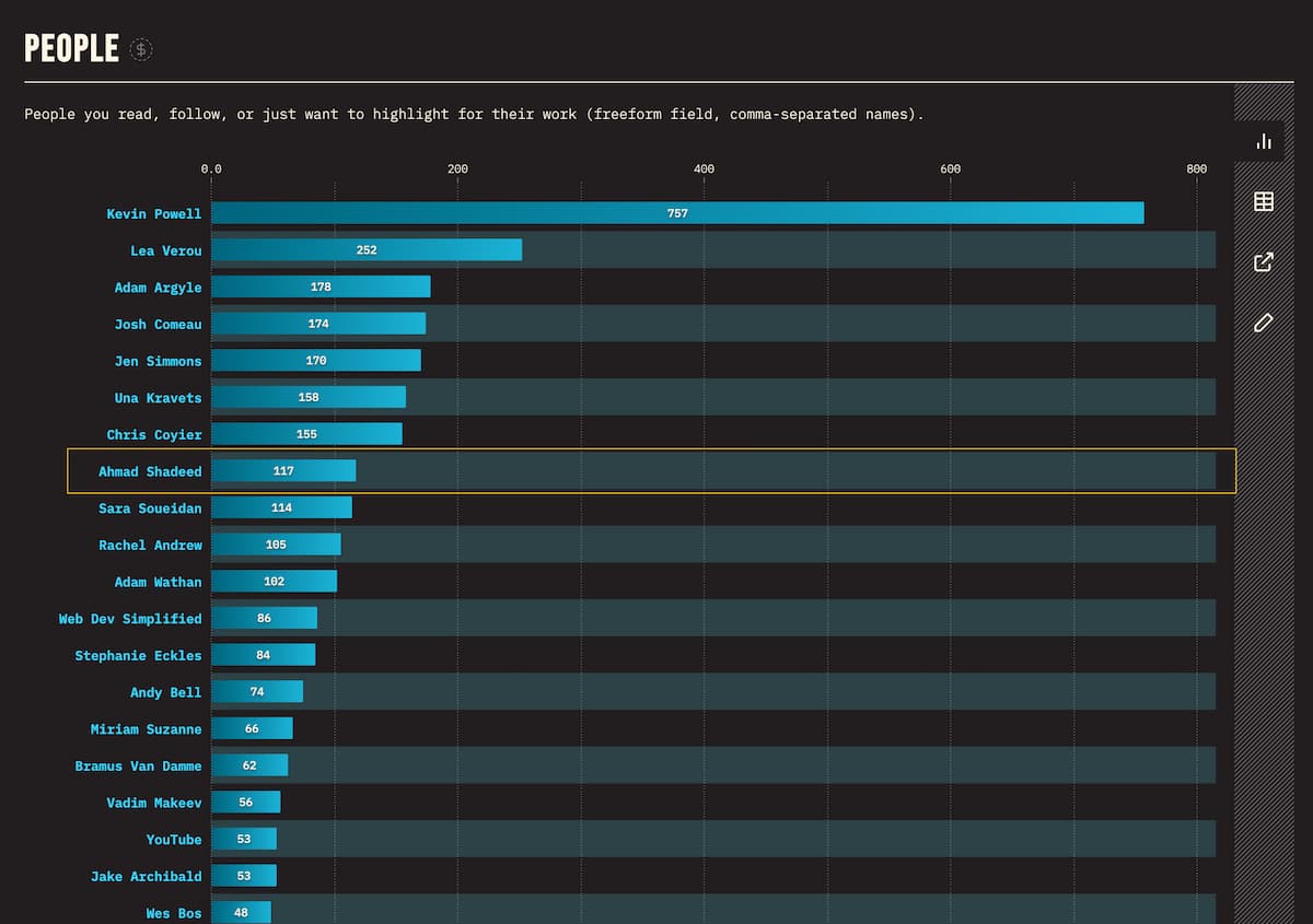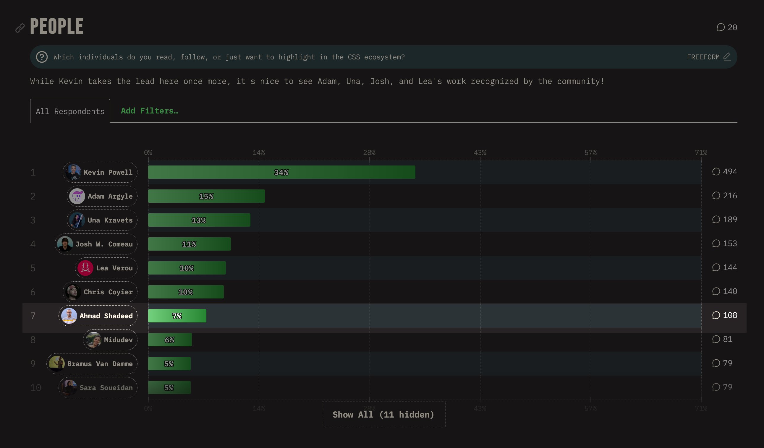 In the state of CSS survey 2023, my name was mentioned among the most mentioned people in the CSS community.