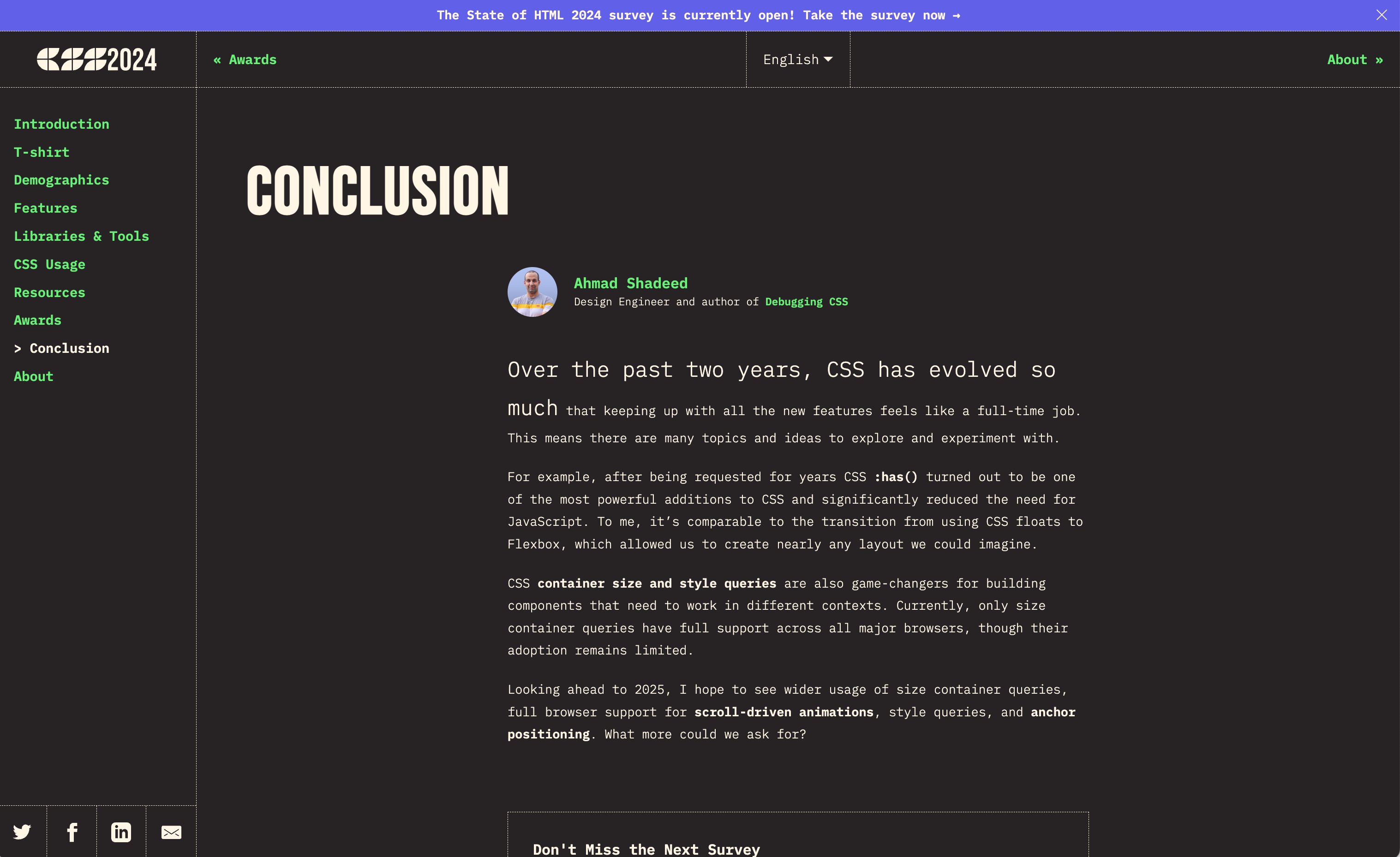 As per the State of CSS 2024 results, I'm among the top 10 most mentioned people in the CSS community! Thanks to everyone who recognized my work. 🙏