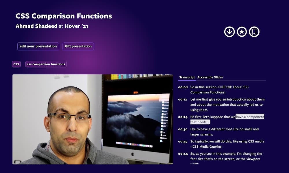 At the start of the year, I got the chance to speak again at Web Directions, this time at their "Hover" conference. I spoke about "CSS Comparison Functions".