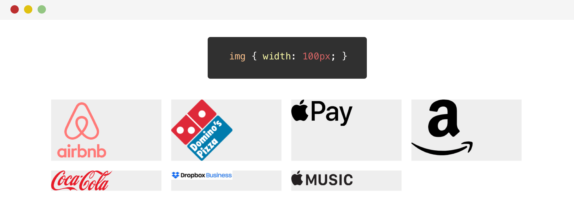 As you see, the result is that each logo is taking the full width of its parent element. The logos sizes are not consistent. As an initial step, let’s try adding a width for them.