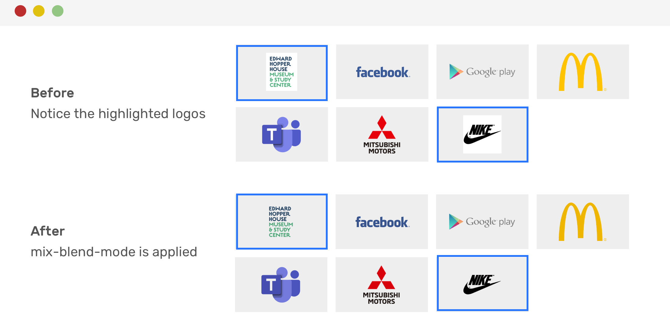 In this tweet, Christopher suggested the use of CSS attribute selectors to apply the mix-blend-mode only on .jpg and .png images.