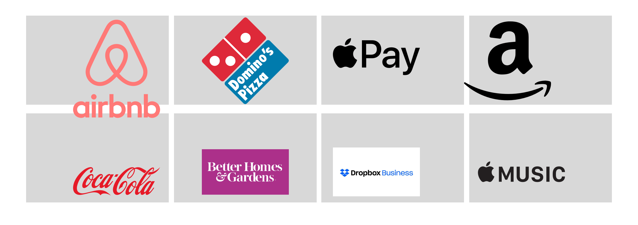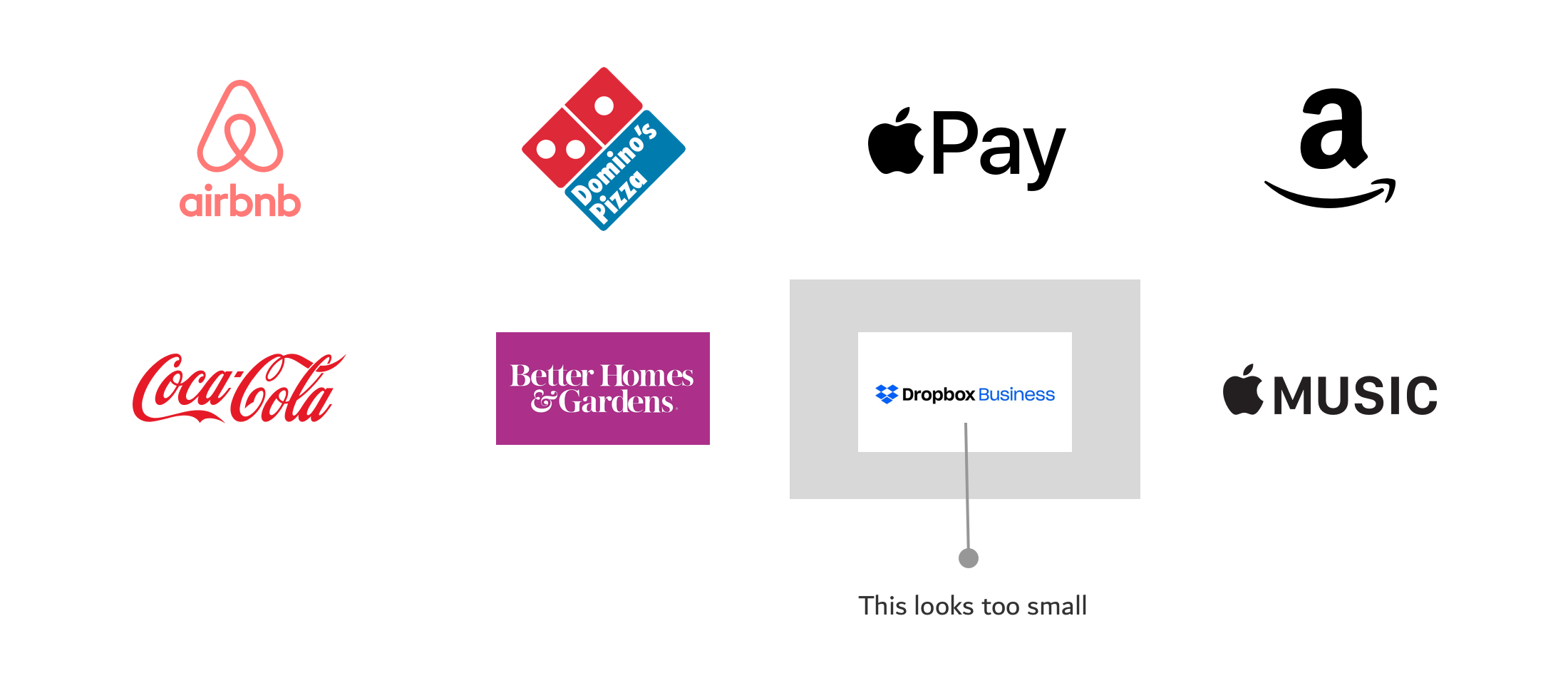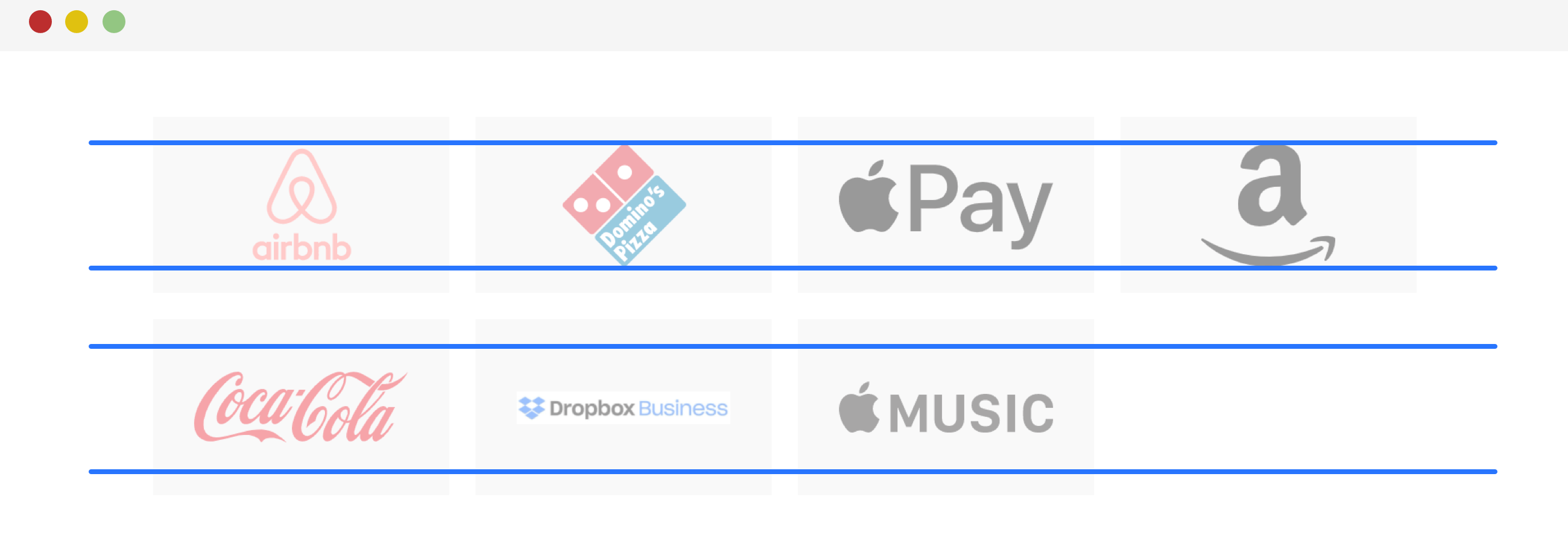 Notice how some logos look bigger than others? AirBnb is the largest one. To judge better, I usually draw a rectangle for each logo, and that rectangle will help me in deciding if the size of the logos is better, the alignment, and the spacing between other logos.