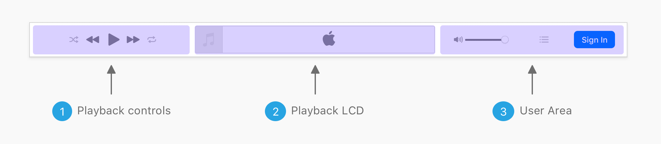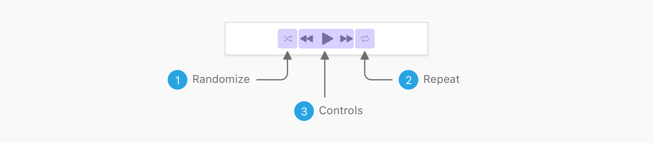 The first section is the playback control. I imagined that the layout is divided into three groups. The first one and two are separated buttons for randomizing and repeating songs. The middle one is for playing and pausing.. etc