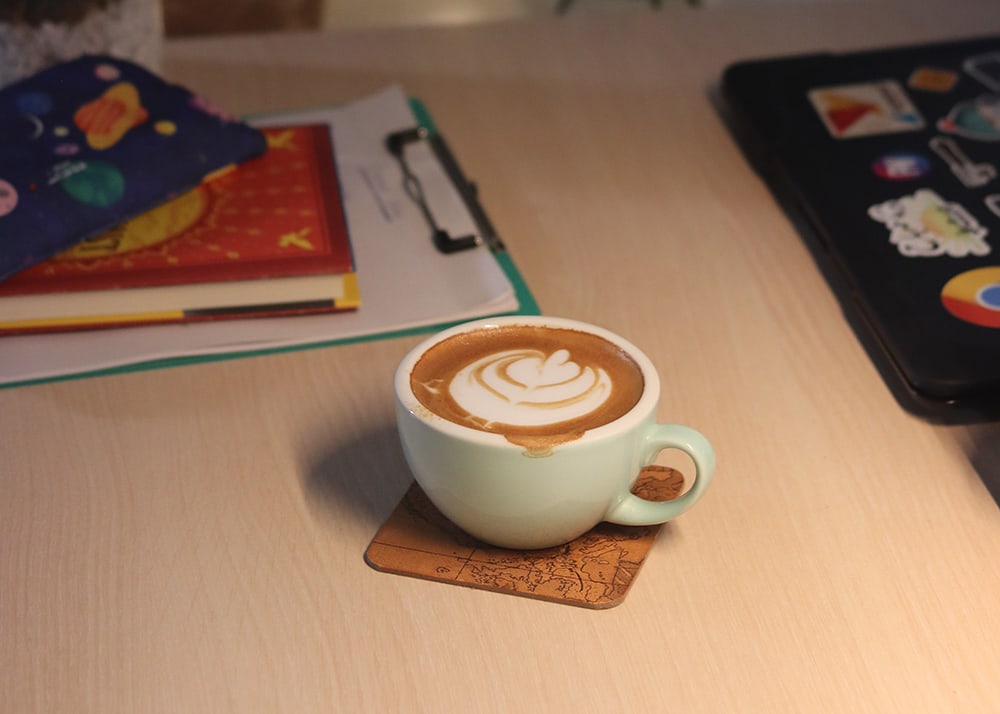 A smooth and milky coffee drink made with a shot of espresso and steamed milk.