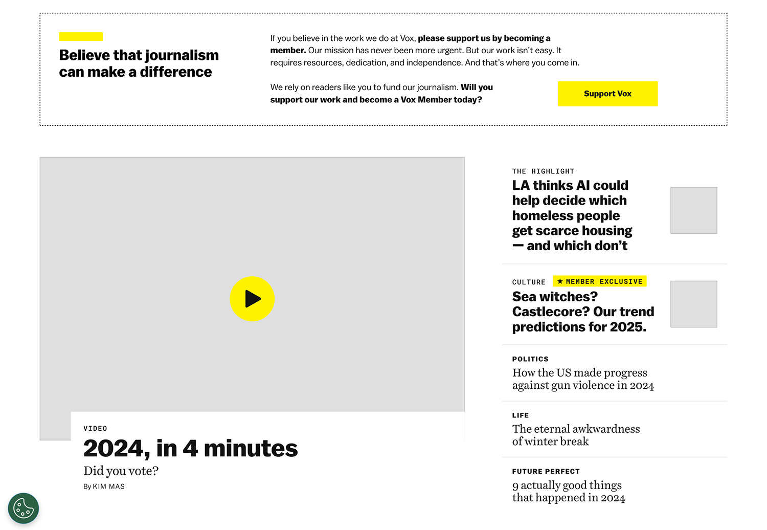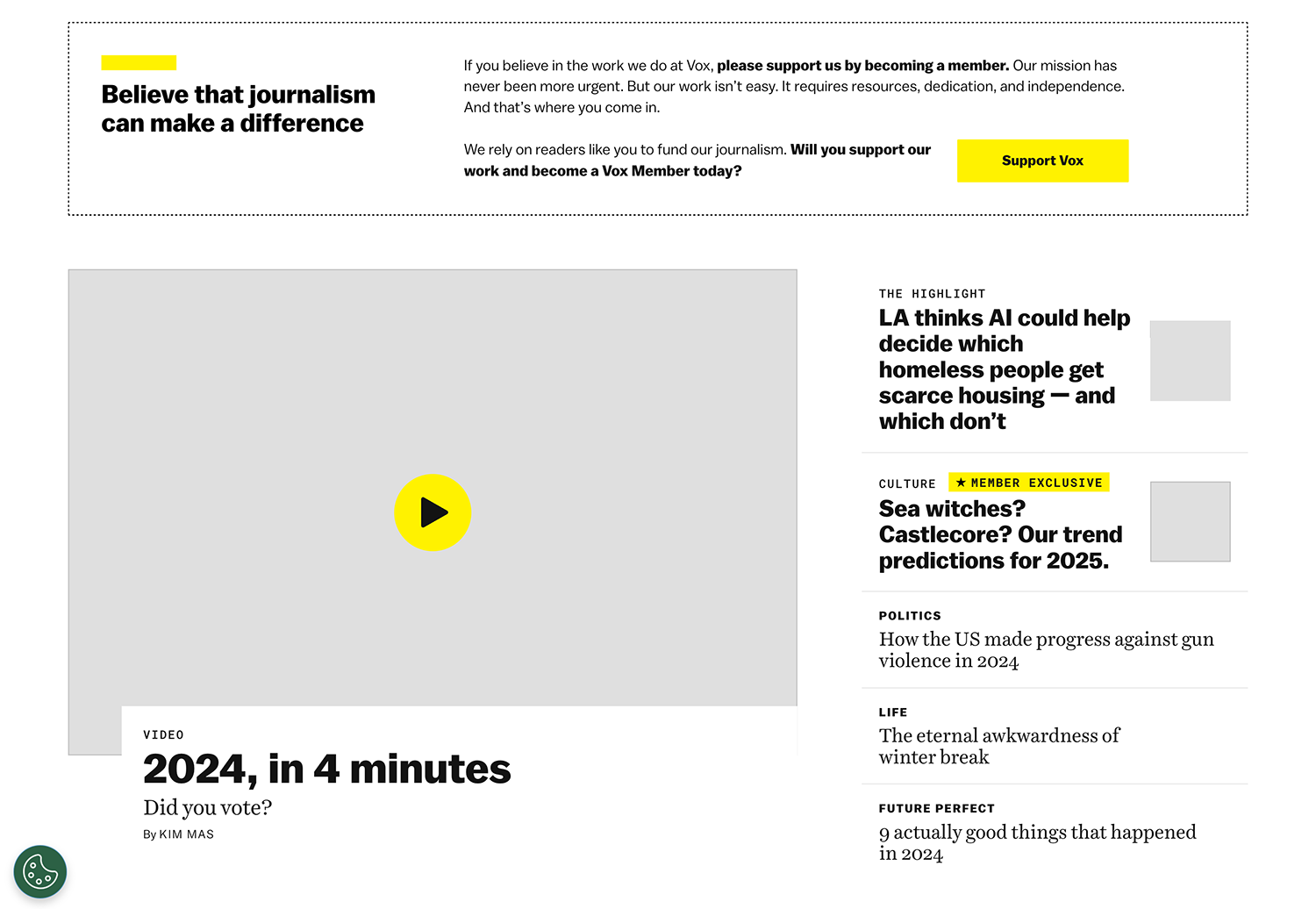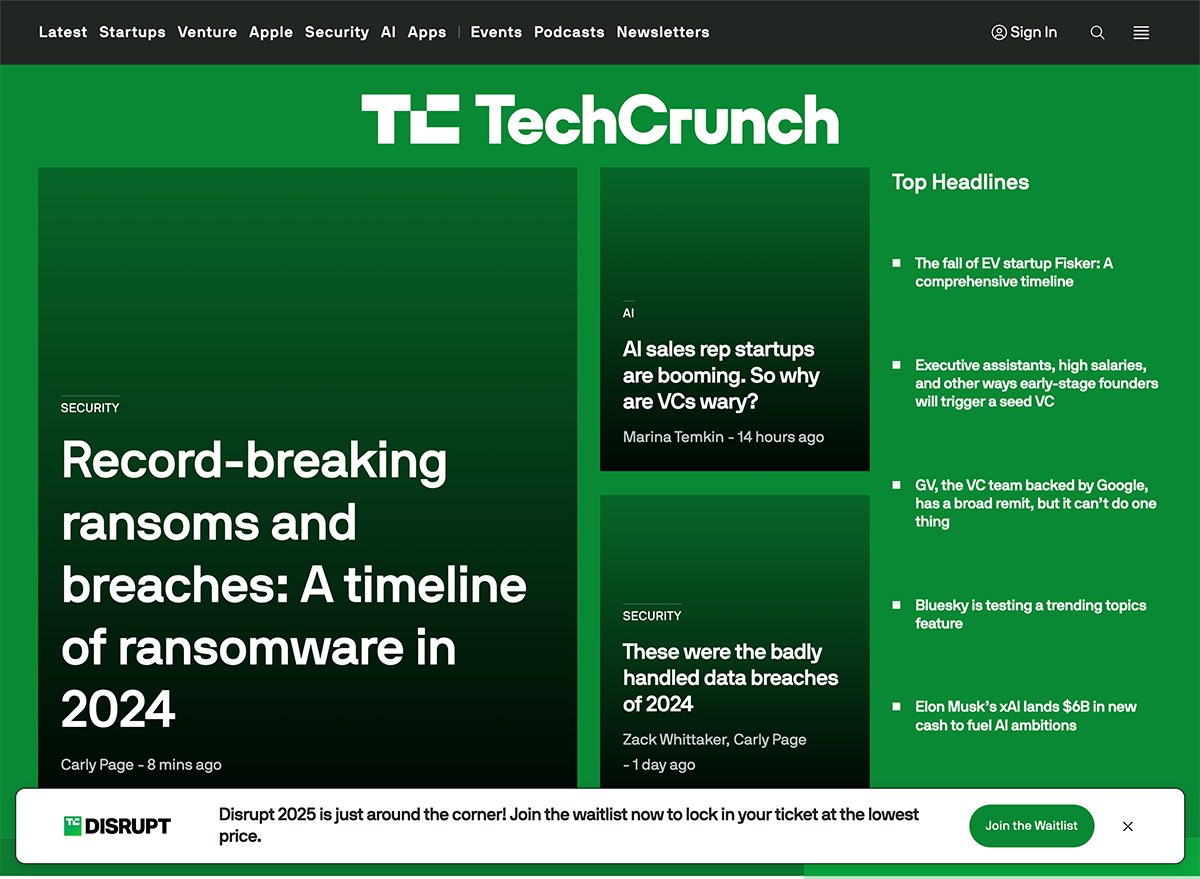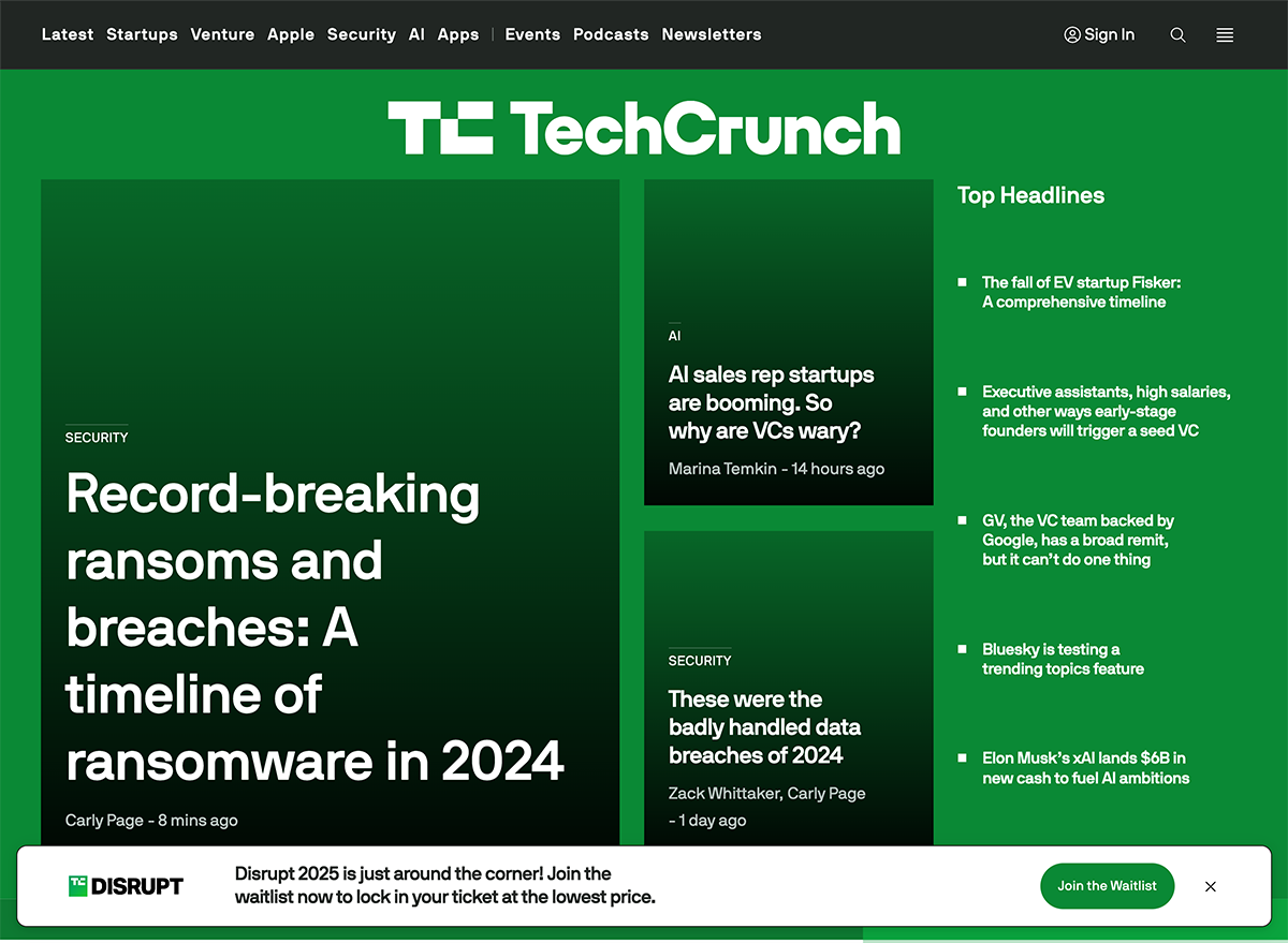 I like to check TechCrunch from time to time and see what’ve changed in their design. For this example, I took a screenshot for the header and main news section.