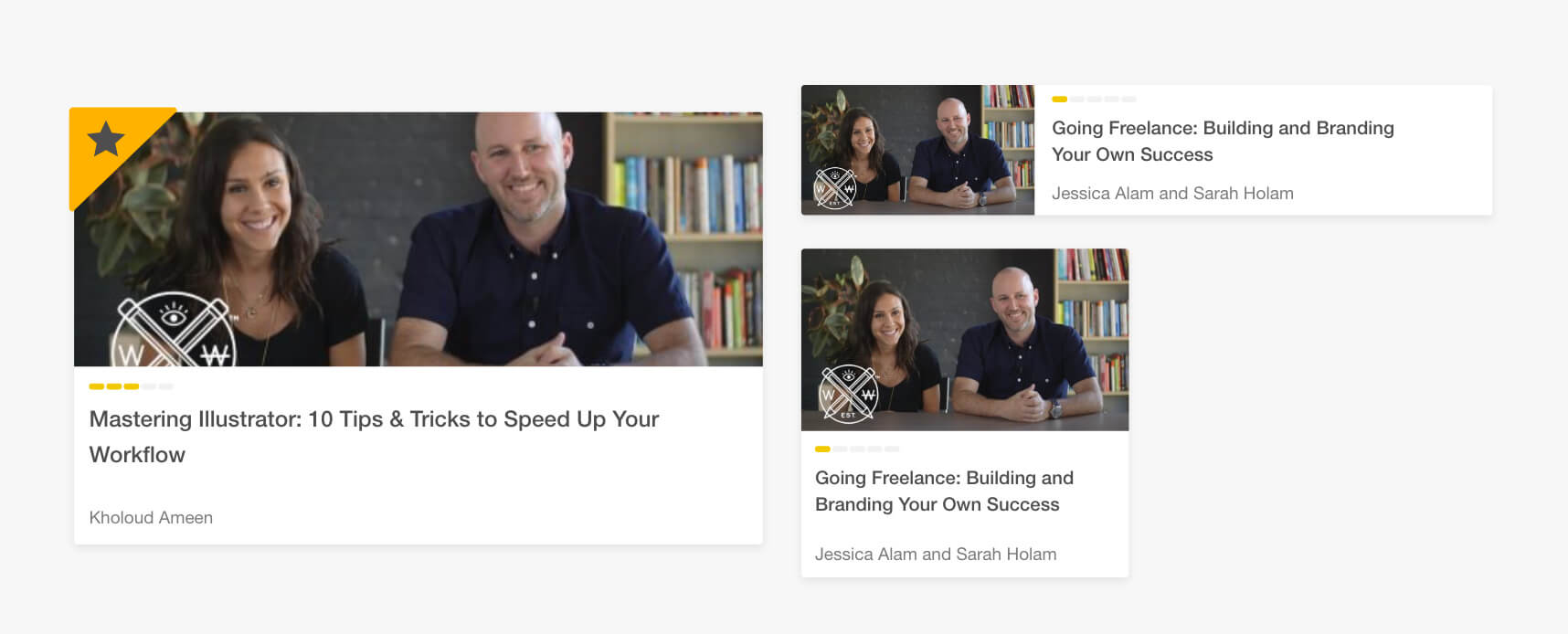 A course component might be featured. To show that to the user, there should be a ribbon placed at the top left corner. Below is a close up of the ribbon. Notice the rounded corners!