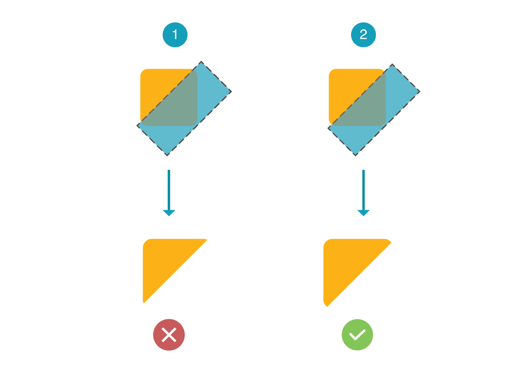 In order to accomplish this, I will need to shift the clipping path so it’s only clip half of the rounded corner. See below for an explanation:
