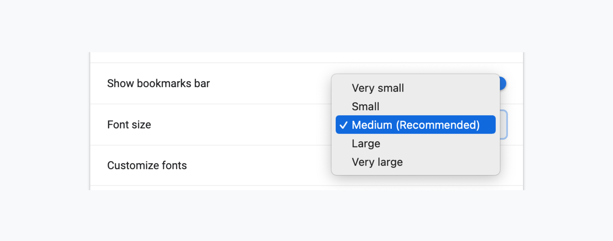 If a user tried to change their browser’s default font size, the above CSS rule will override the user’s preference (since developer styles win over the user’s one).