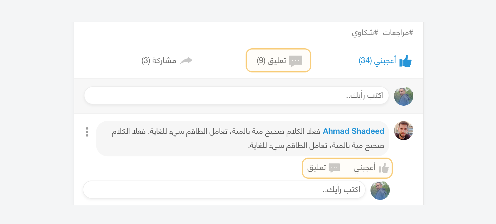 In this example, we have a list of actions (like, comment) for the main social feed item, and another list per each comment.