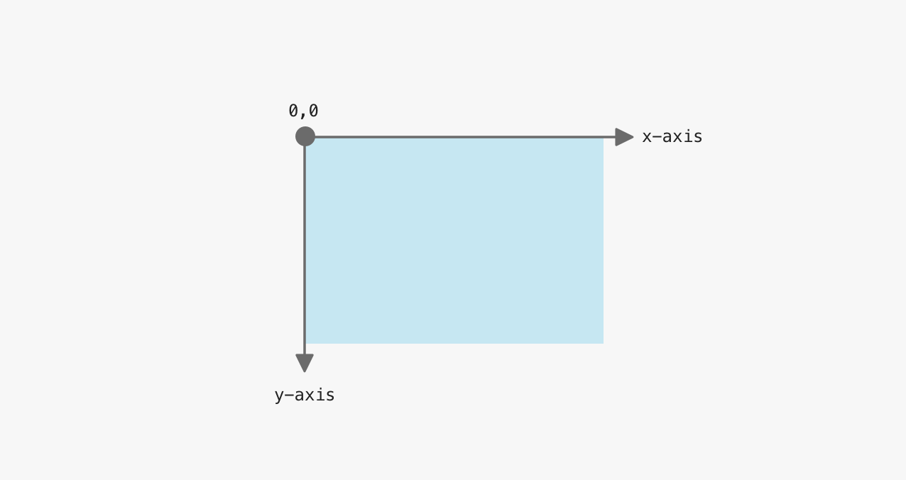 Before diving into the details of clip-path, it’s worth mentioning how the coordinate system works. The origin is the top-left corner with the x-axis pointing to the right and the y-axis pointing down.