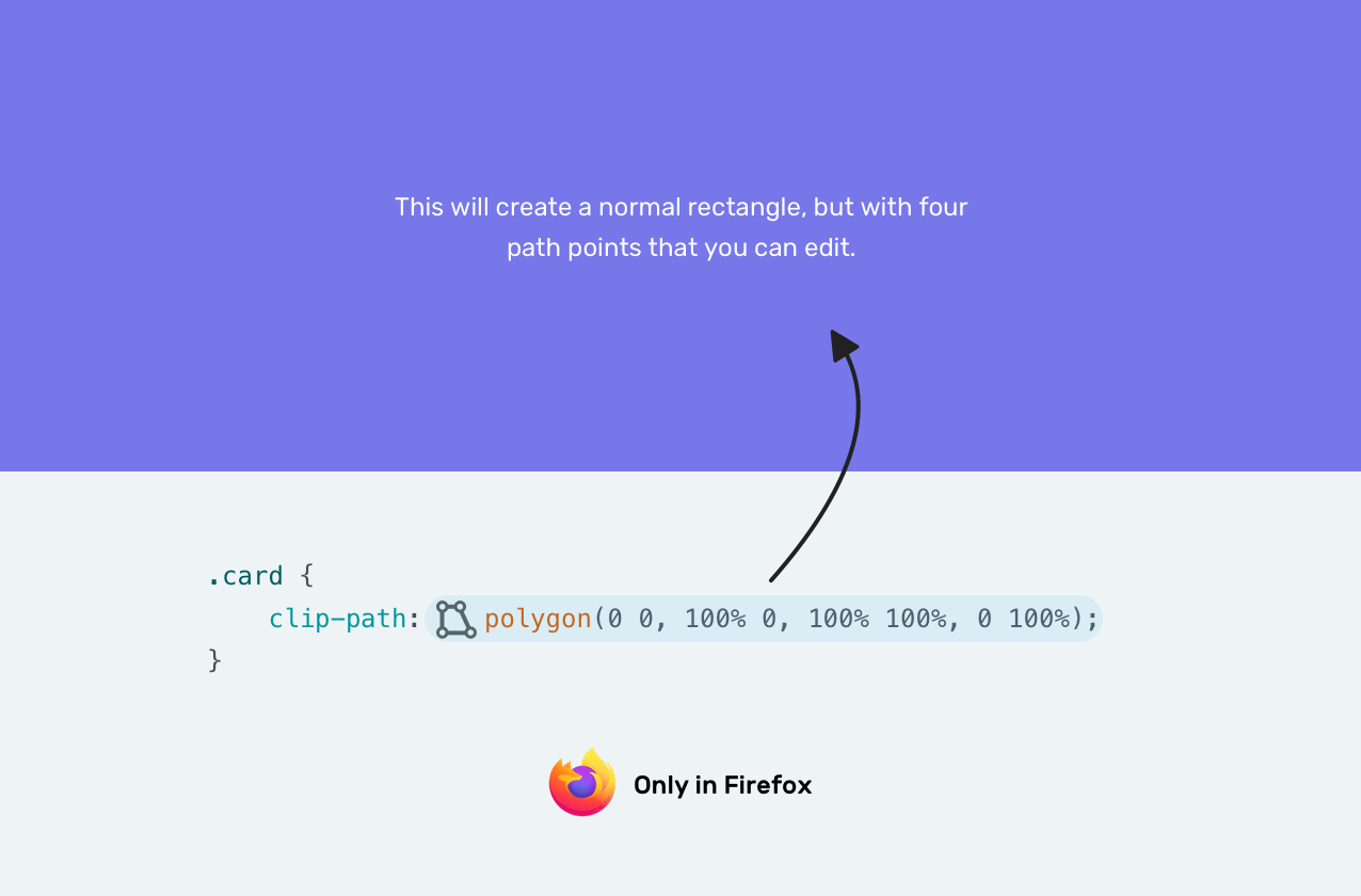 In some cases, it might be annoying to tweak 8 numbers for the polygon value. For that reason, I have a little trick for you which is to depend on the browser to create the shape we want. First, we need to add the following: