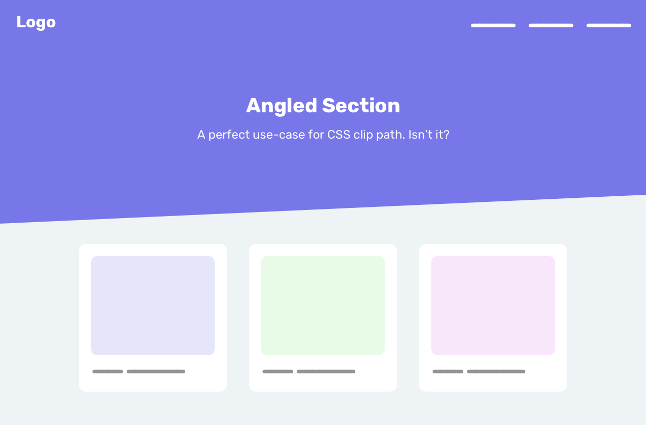 In a way or another, you might have seen this pattern on the web where a section has a slightly angled background. That is a perfect use-case for clip-path.