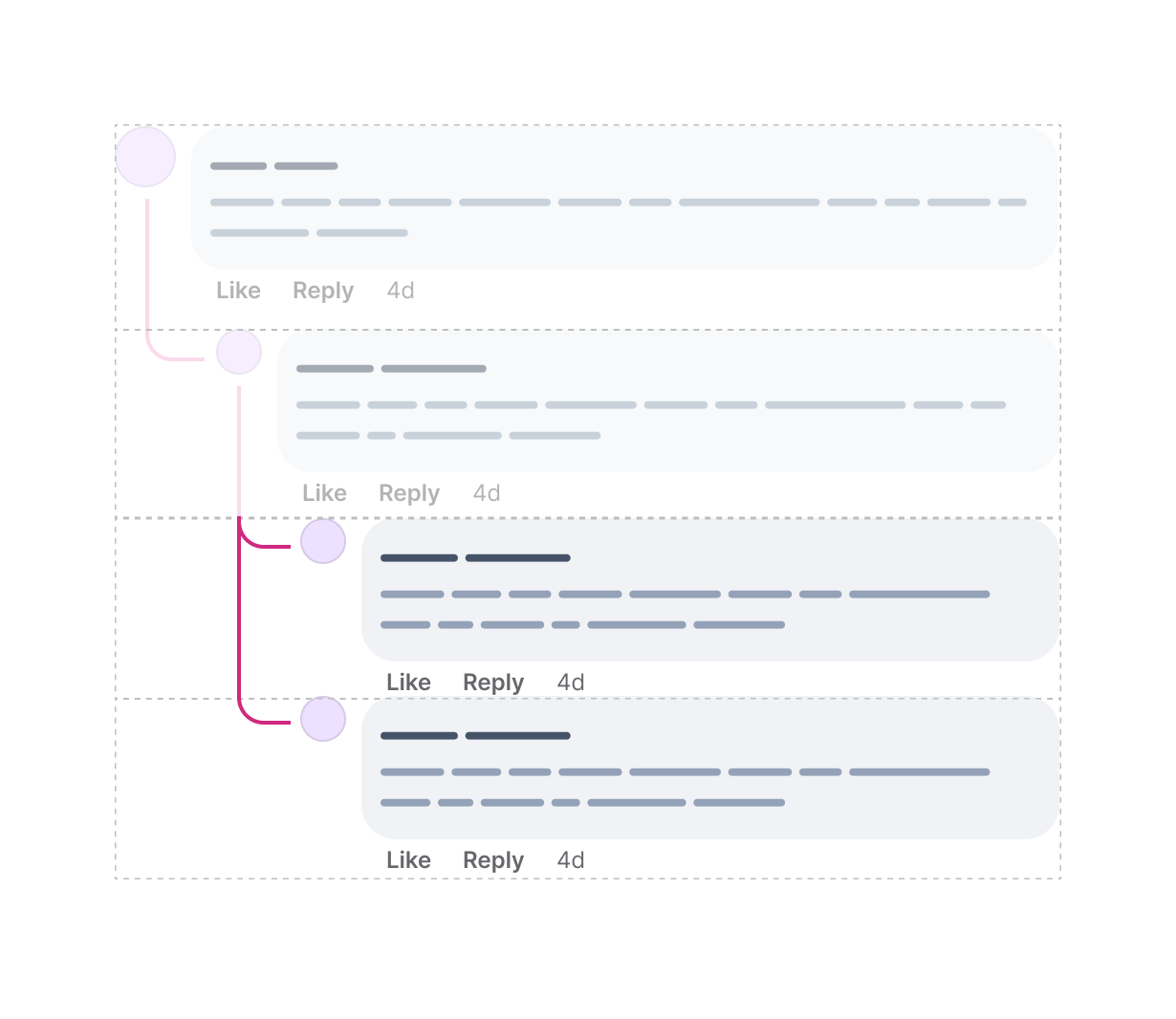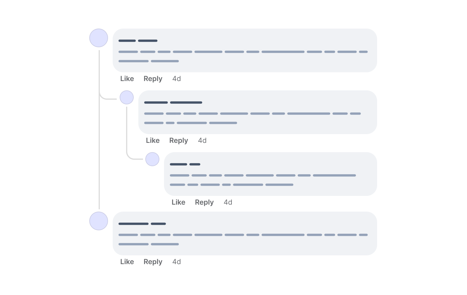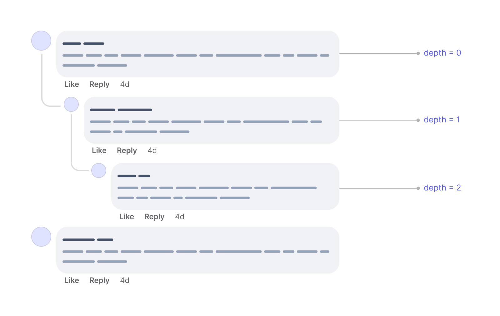 We have a comment that can be nested into two more levels. I will call those “depths” in the article.
