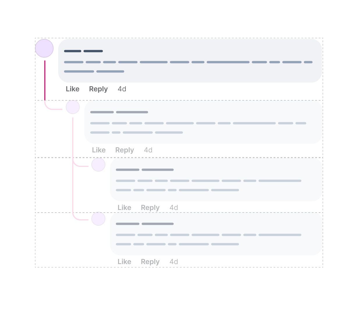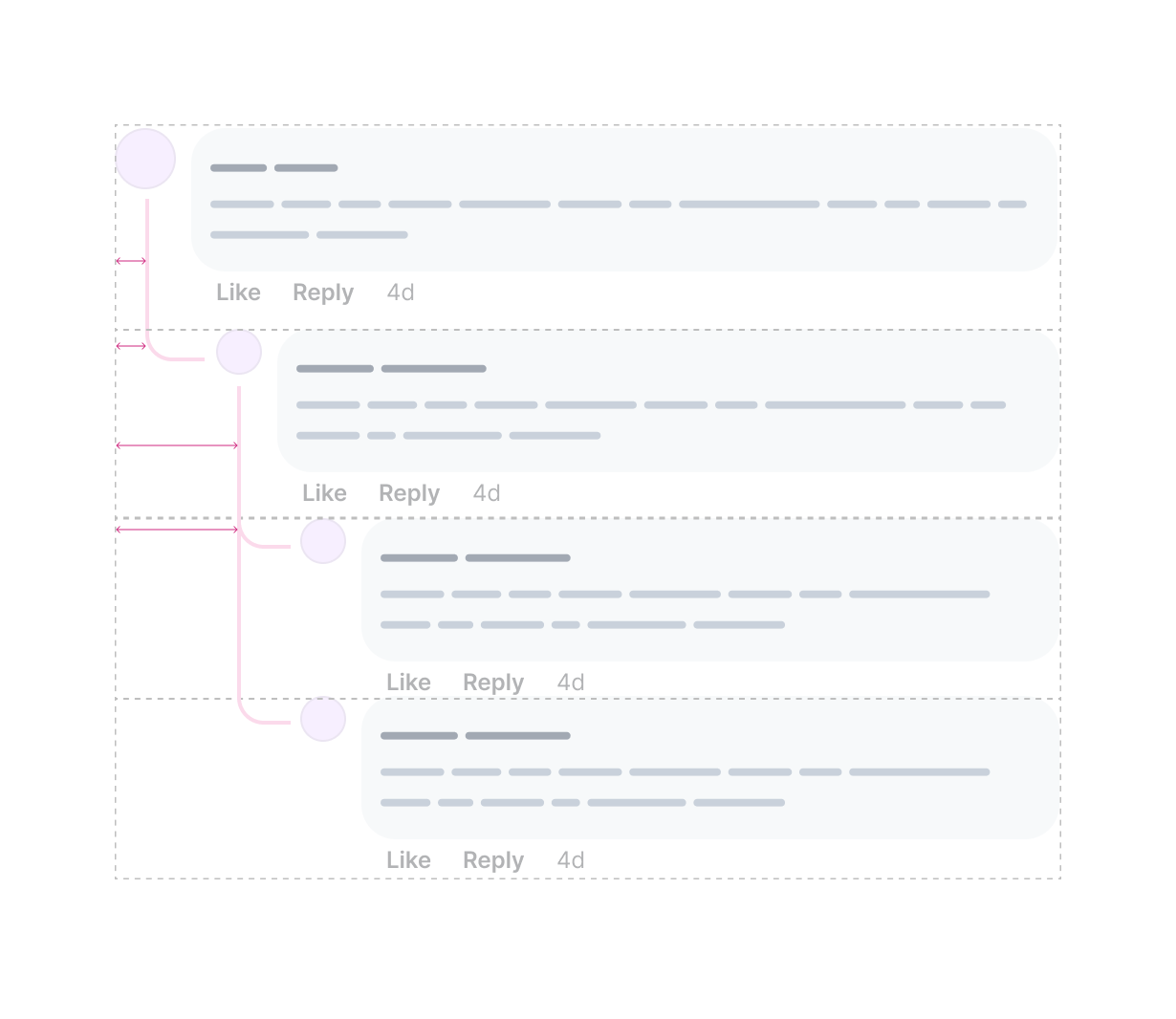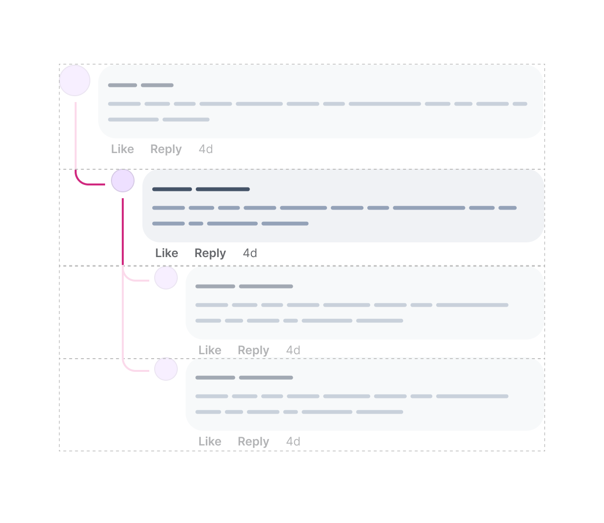 We have a comment that can be nested into two more levels. I will call those “depths” in the article.