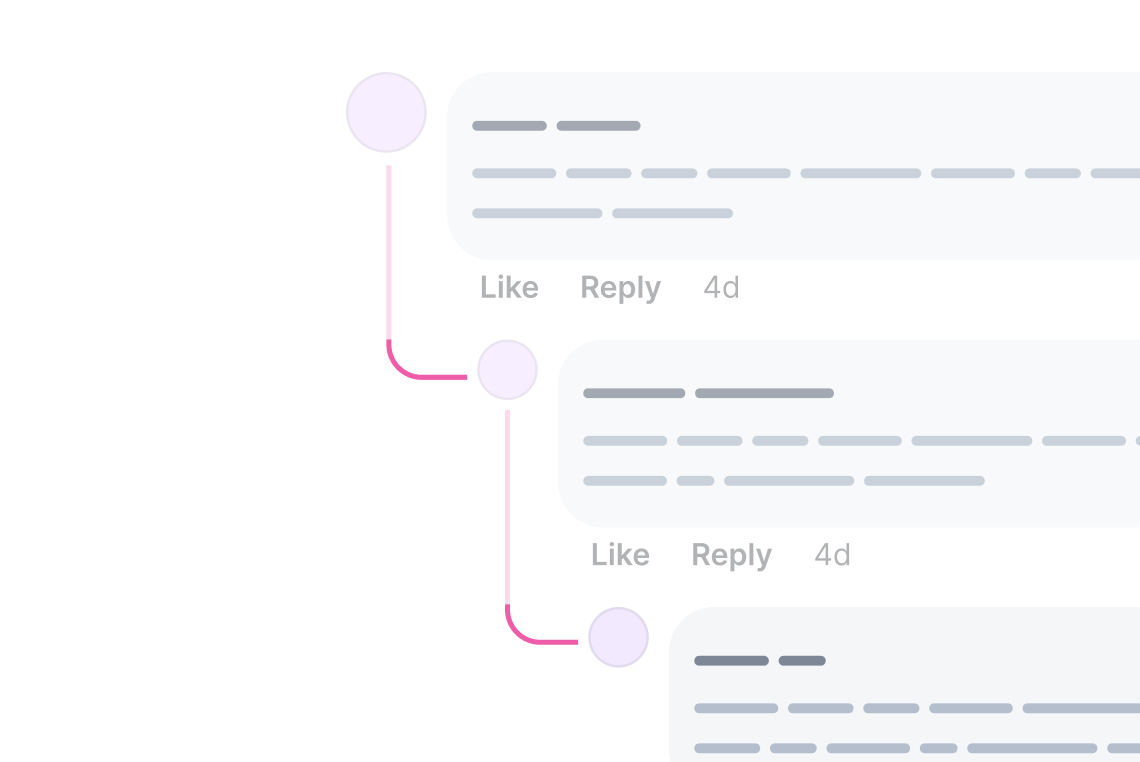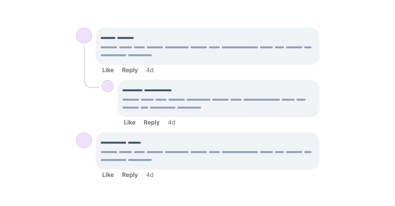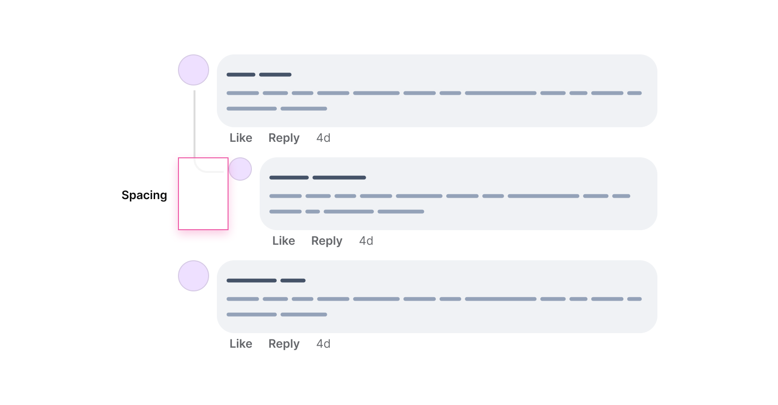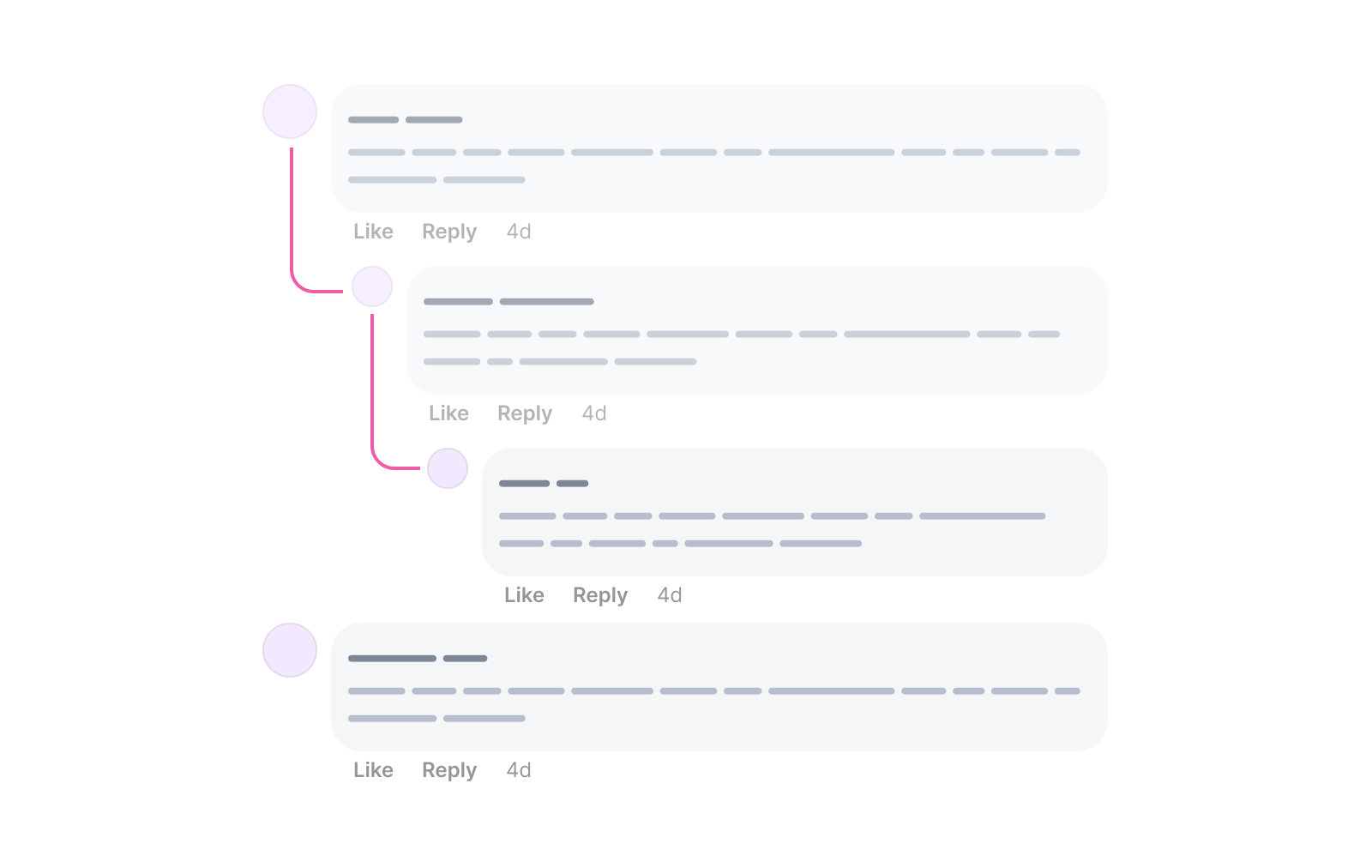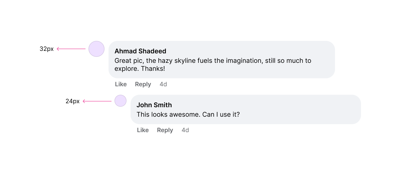When a reply is nested within a comment, the user avatar size will become smaller. This is good to make it visually easy to distinguish between a main comment and a reply.