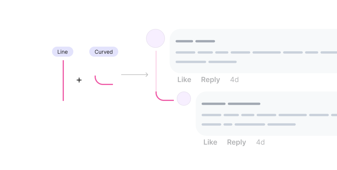 To make it more clear that there is a reply to a comment, there are connecting lines between the main comment and replies. The Facebook team used a <div> to handle the lines. Can I do something different?