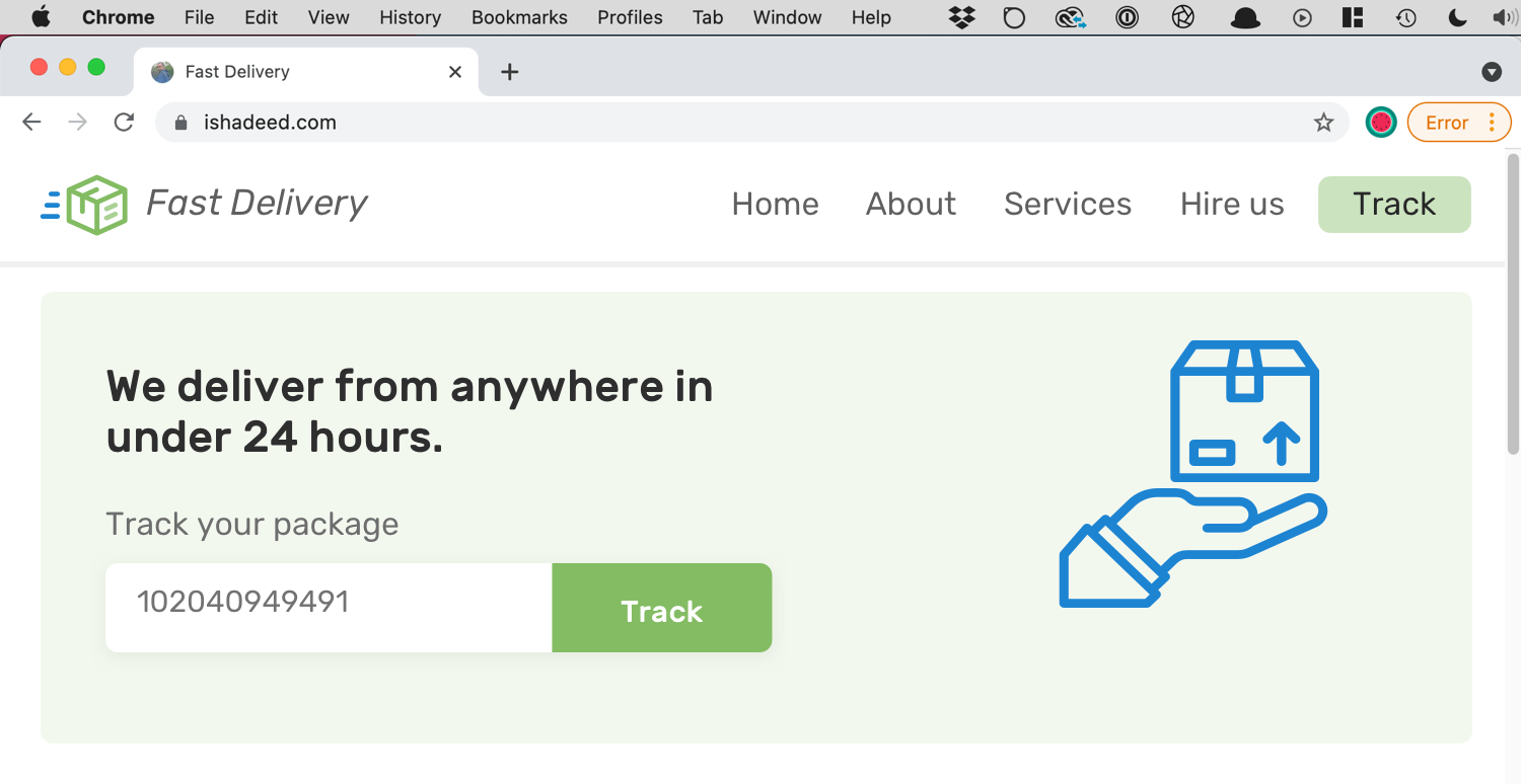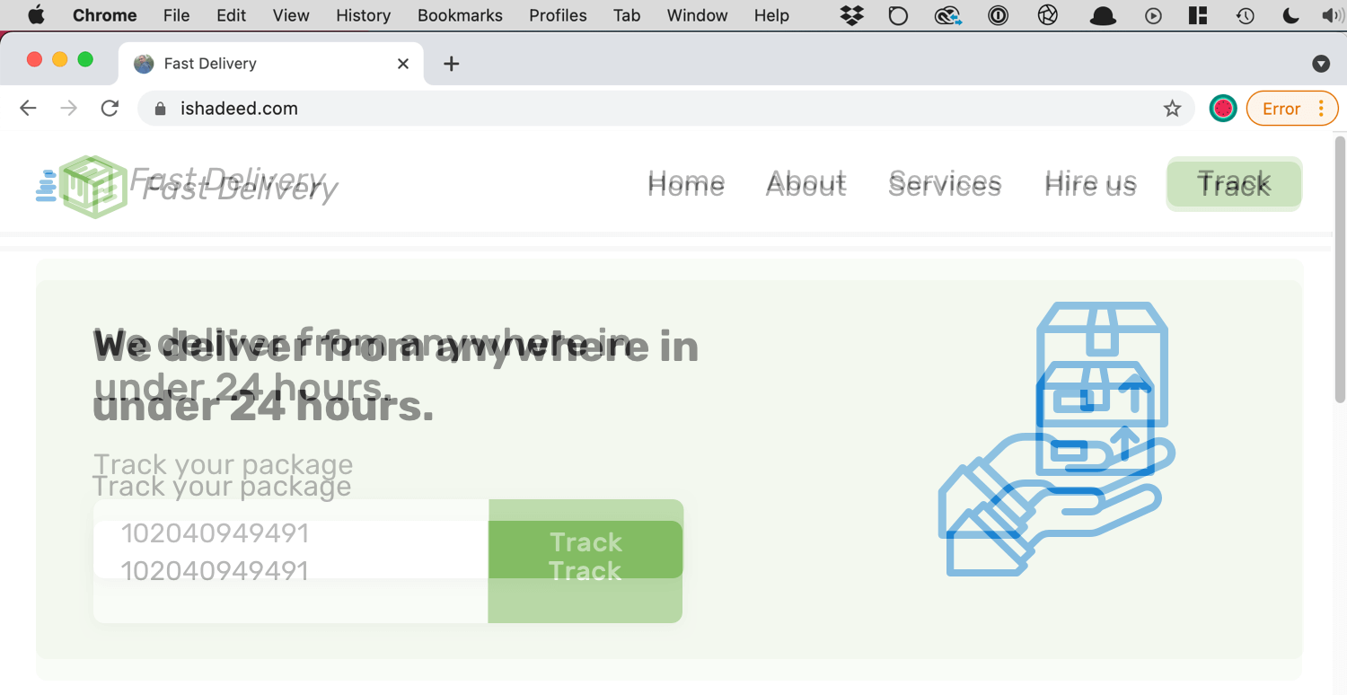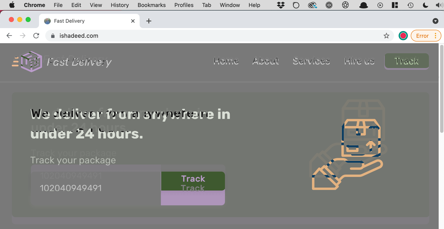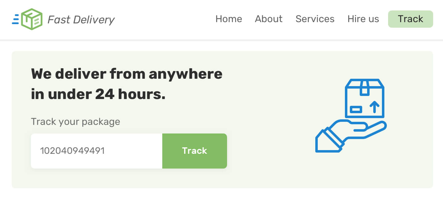 First, I want to show you the UI that will be used as an example in this article. It’s an imaginative delivery website, and I will focus on the header and hero section. Here it is: