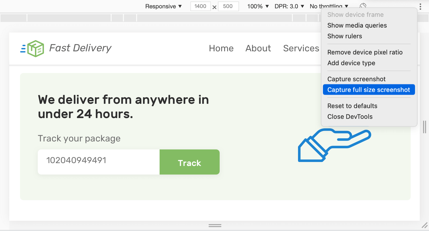 To get a clear comparison, the screenshot and the design width should be identical. I’m using Chrome DevTools for taking the screenshot, but you can use the same feature in different browsers (e.g: Firefox).