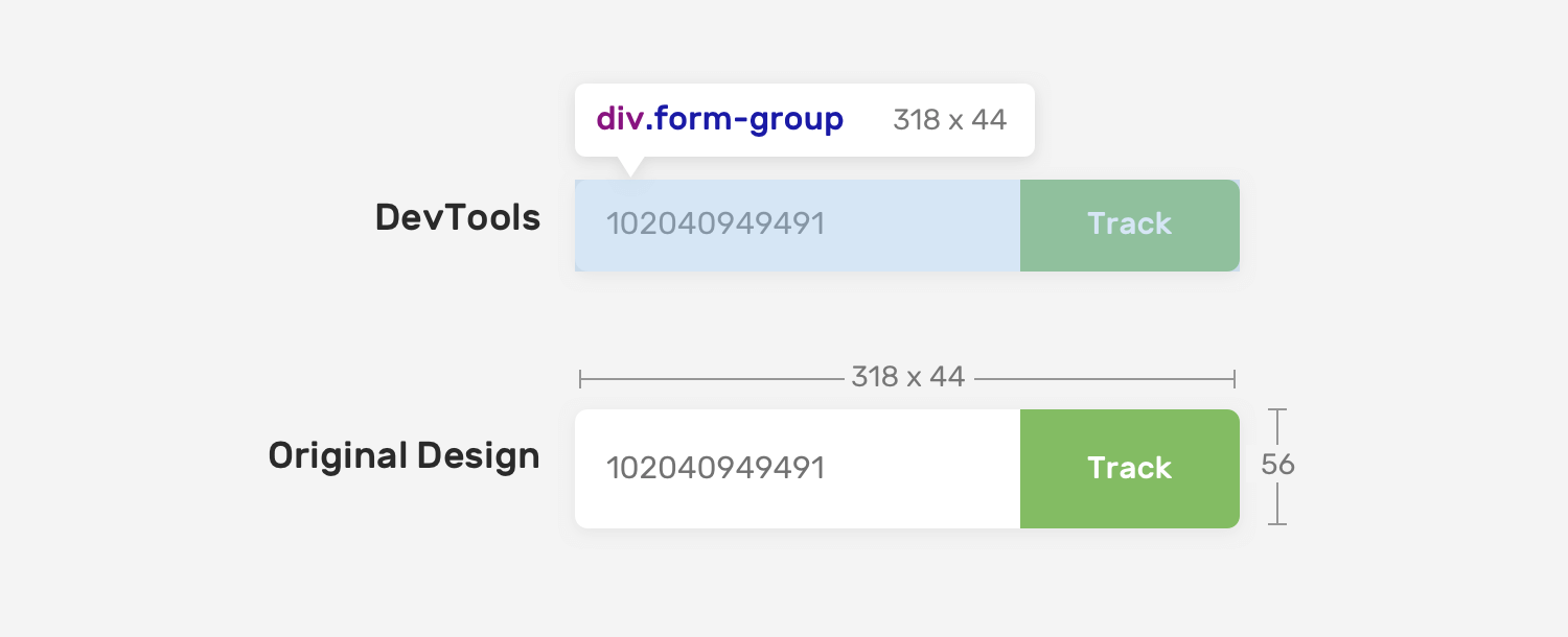 When inspecting an element in the DevTools, we can get its width and height and compare them with the design. Consider the following figure: