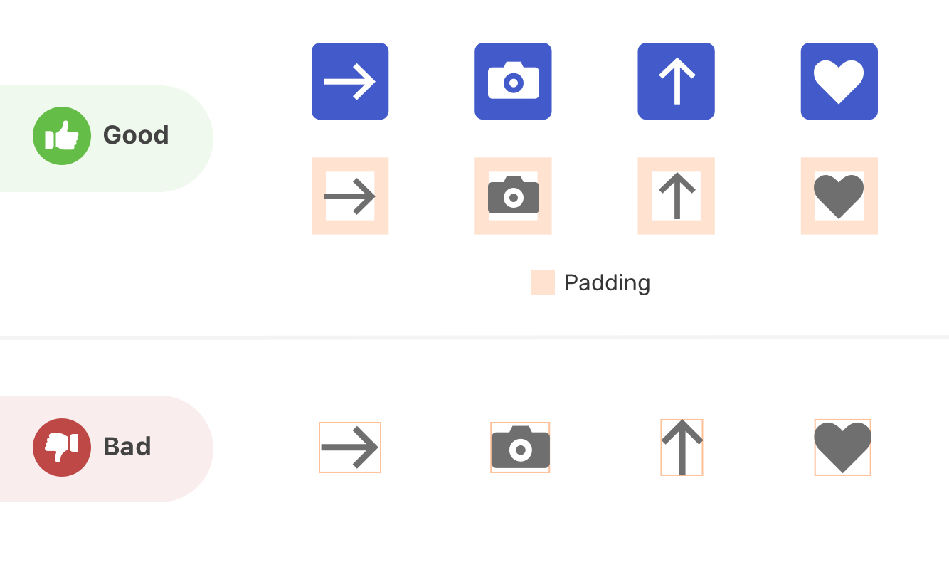 It’s important to have icons with the same width and height to achieve consistency in aligning them. This will help to avoid working on a custom alignment for a specific icon.