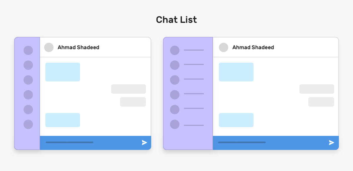 When there is enough space, the listing will expand and it will show each user’s name. The parent of the chat list can be an element that is being sized dynamically (e.g: by using CSS viewport units, or CSS comparison functions).