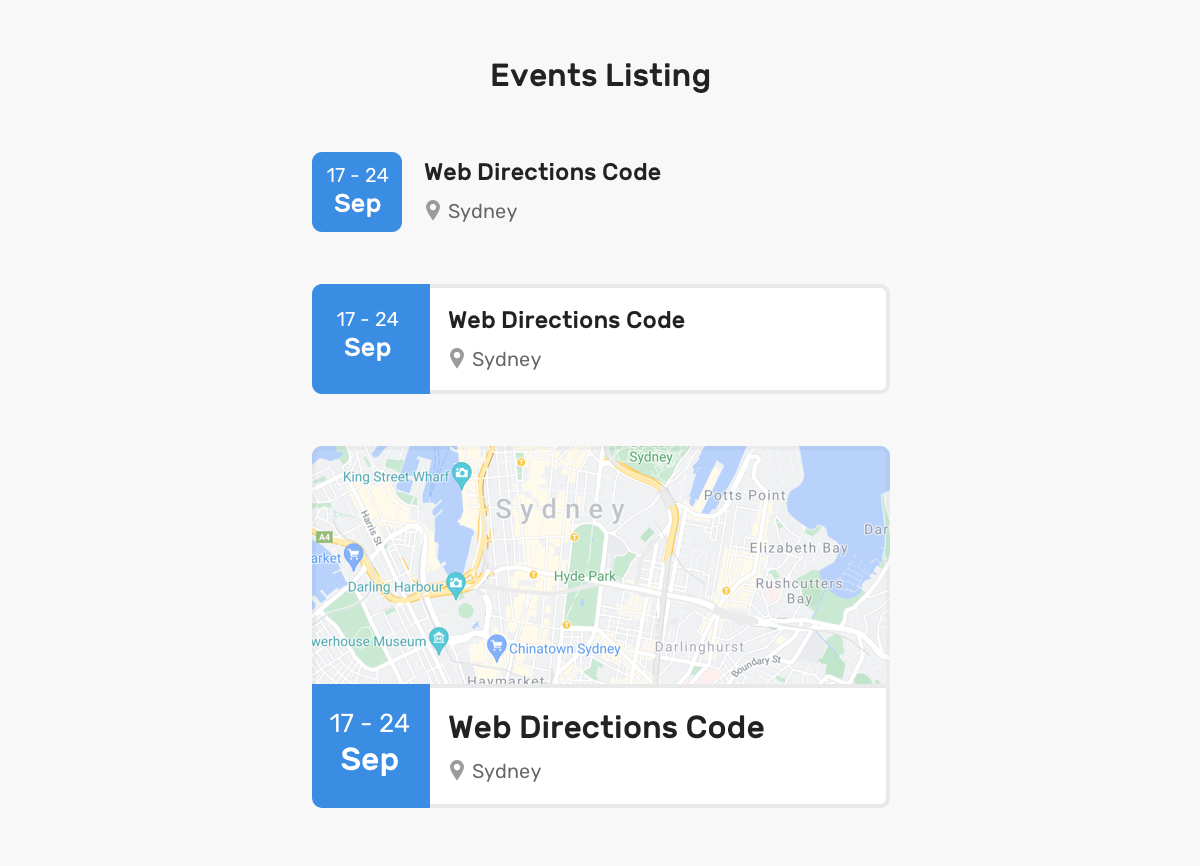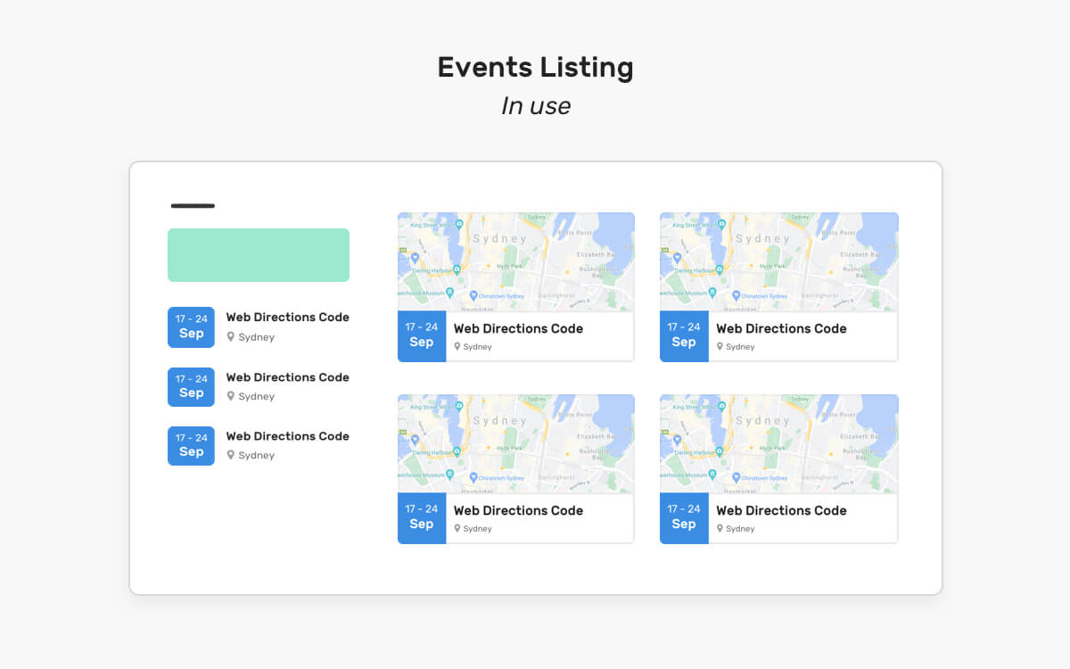 Not only that, but we might have a variation of a component that should only be shown in a specific context. For example, the events listing page. In such a case, it’s important to be clear on where to use this variation.