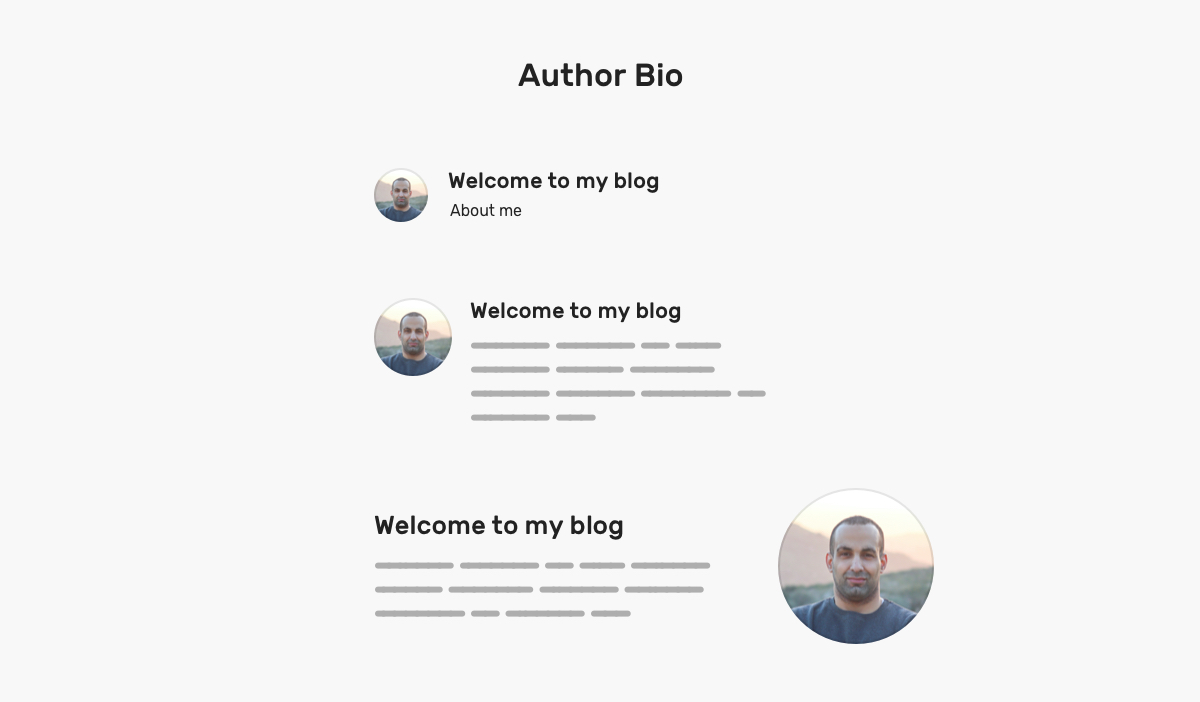 An author bio is a common component in blogs. It can be used in multiple contexts, and thus it should adapt. The above figure shows that.