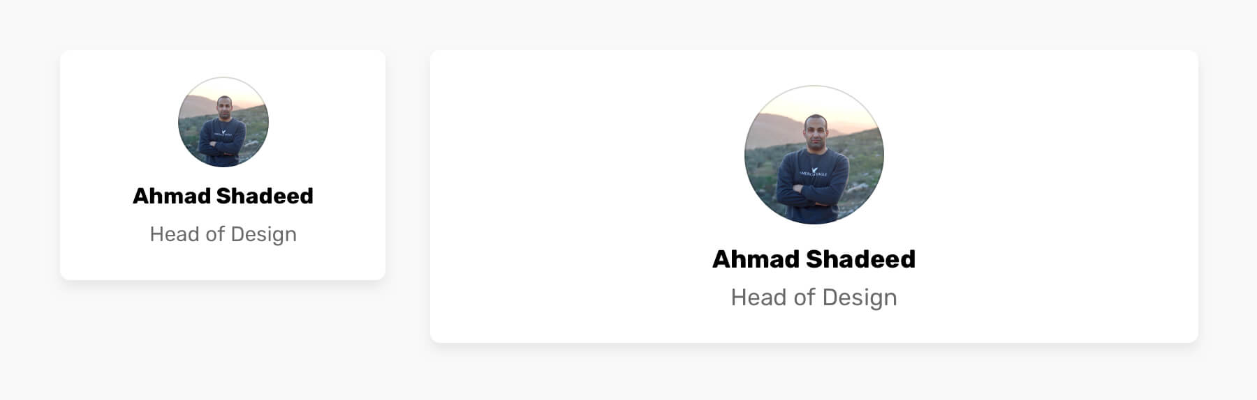 A bio can live within a smaller container (e.g: sidebar) or be shown on a mobile viewport, or a large container like a page header.