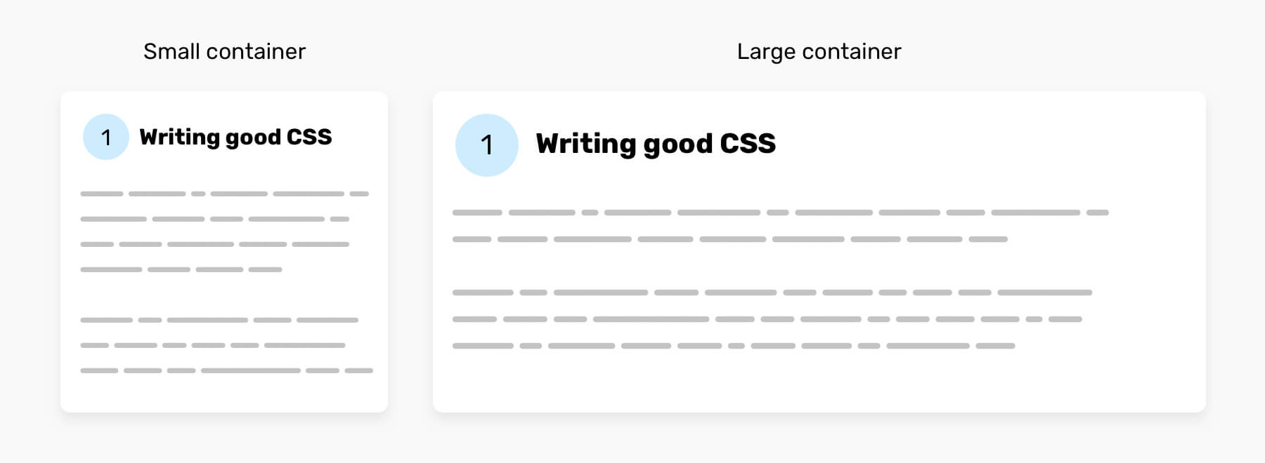 Notice that the font size is slighter getting bigger based on the container size. This can be useful for creating a stacked card component that works no matter where it’s placed.