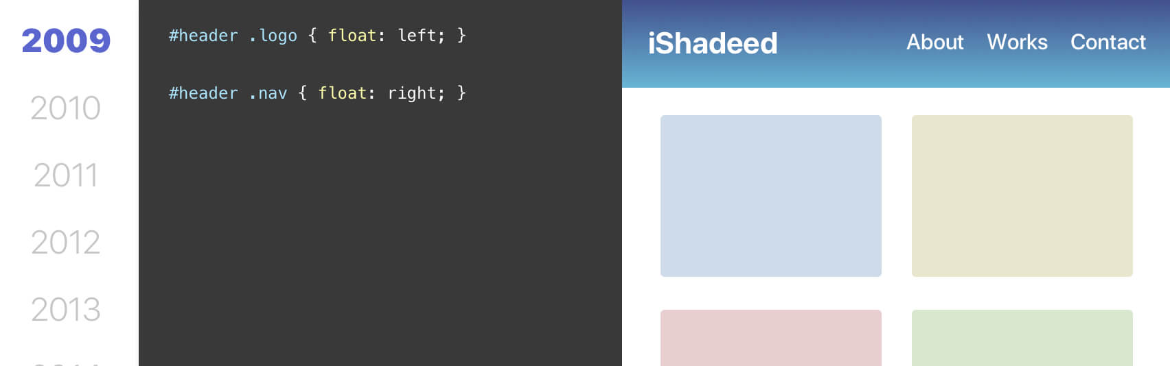 In May 2010, Ethan Marcotte coined the term responsive web design (RWD). At that time, using float and clearfix was the only way to build layouts with great browser support.