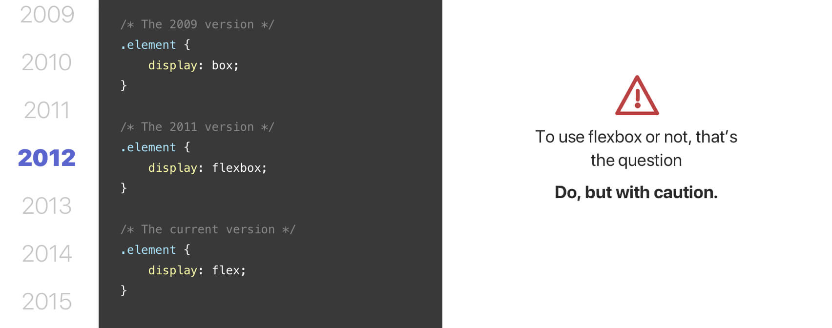 This made it a bit complex to use flexbox, but from 2012 and beyond, things started to get better.