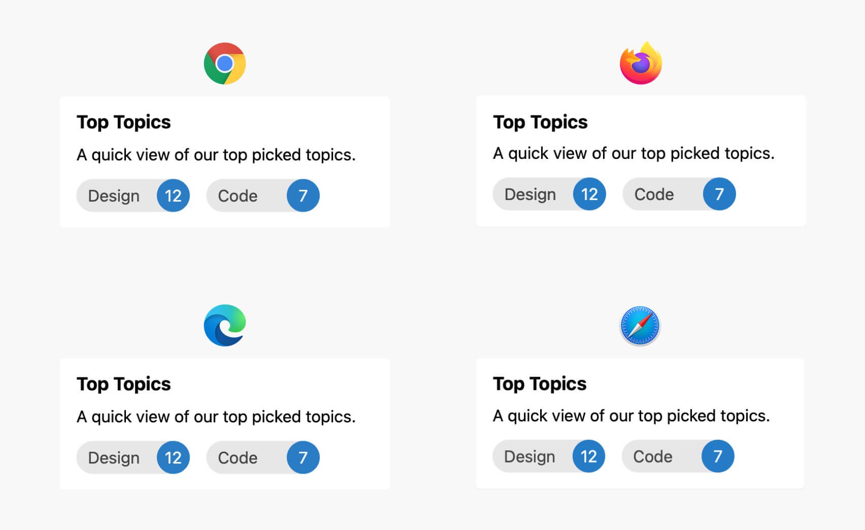 Here is how it looks in four different browsers. There is no difference between them, right? That’s the goal of cross-browser development, to have something look and behave the same on different browsers.