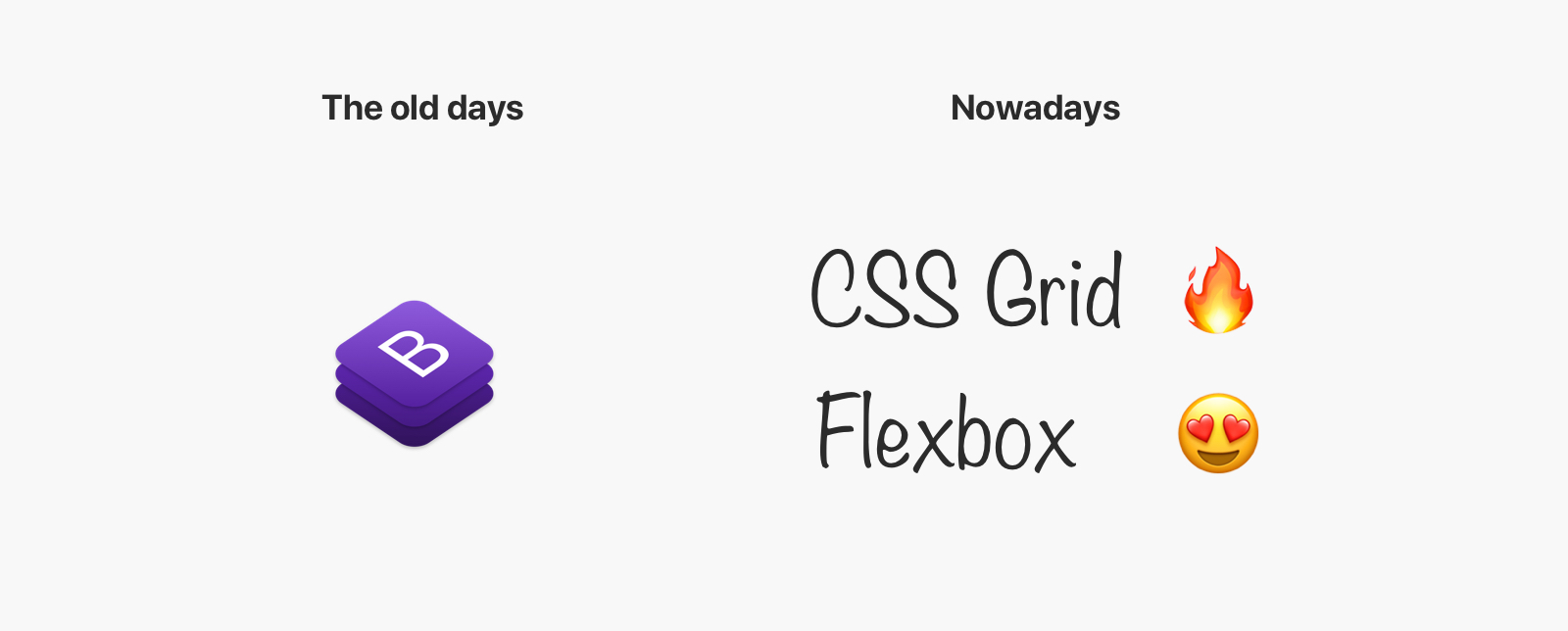 If I can recall well, one of the reasons for the popularity of frameworks like Bootstrap is the fact that they provide a consistent experience on a different browser with great community support. These days, we don’t have to worry about that. To be honest, we don’t even have a valid reason for using a framework with the tools at hand like grid and flexbox.