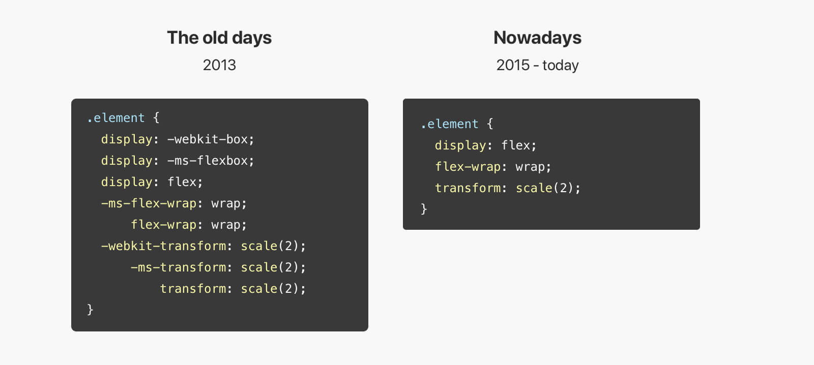 We used to write CSS with Compass or Autoprefixer, but most of the CSS we write today doesn’t need prefixes at all.