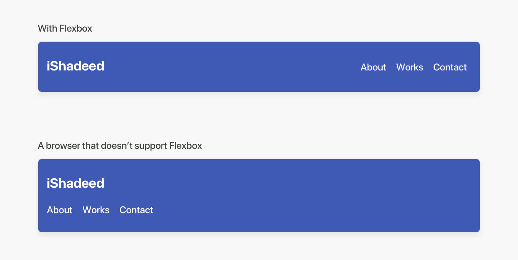 Flexbox was used with the progressive enhancement approach, which means that if a browser doesn’t support the new syntax, it will fallback to something else. To achieve that, I used Modernizr.
