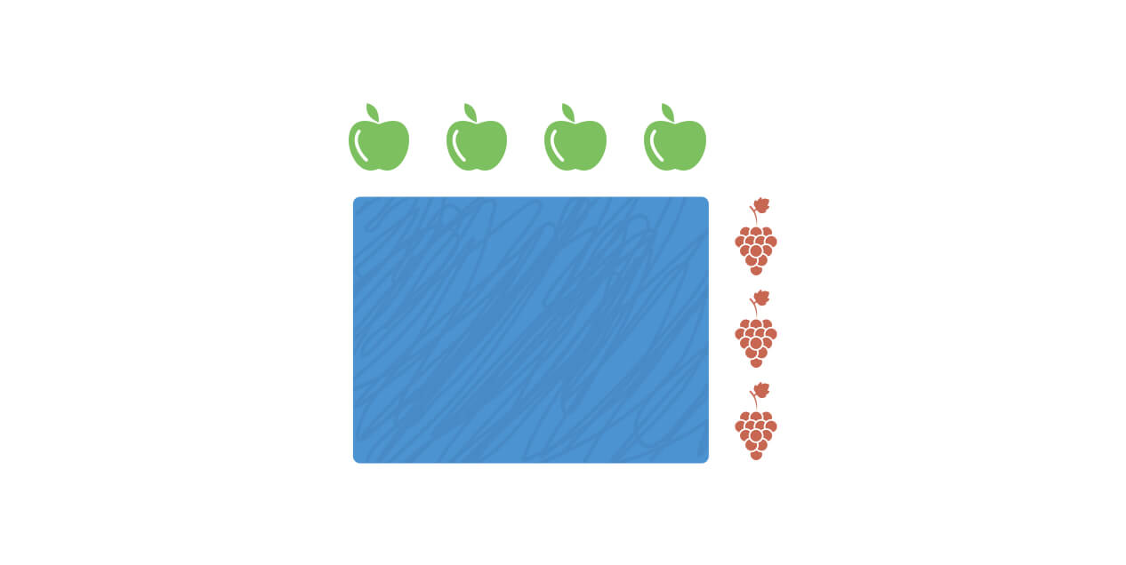 We have a ratio of 4:3. Which shows that the ratio of apple to grape is four to three.