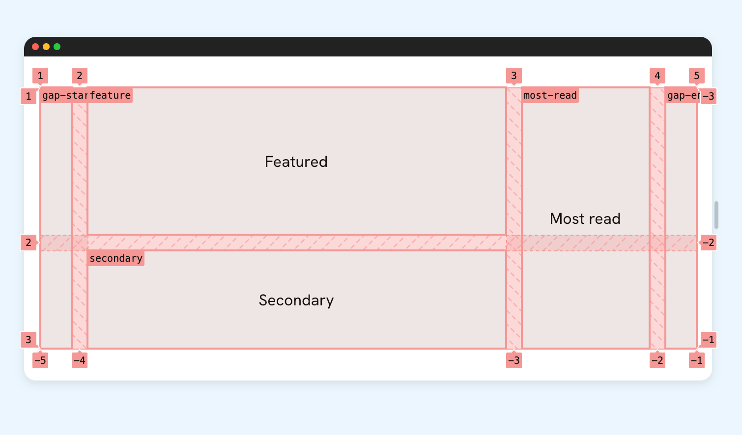 What I like about grid areas is that they provide us with a visualization of the grid in CSS.