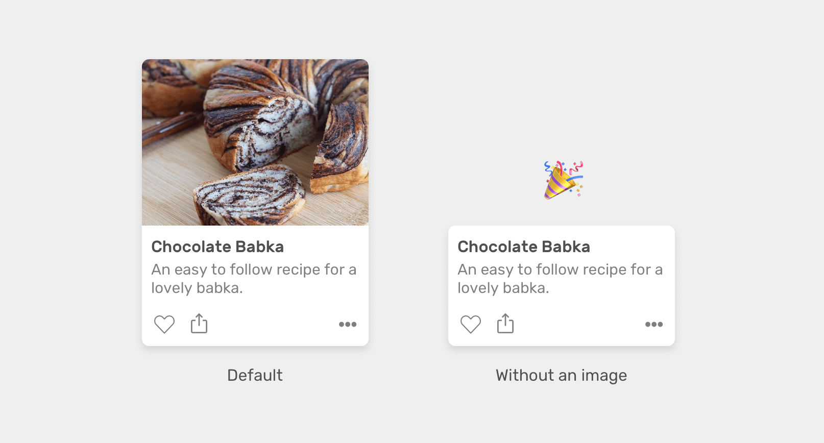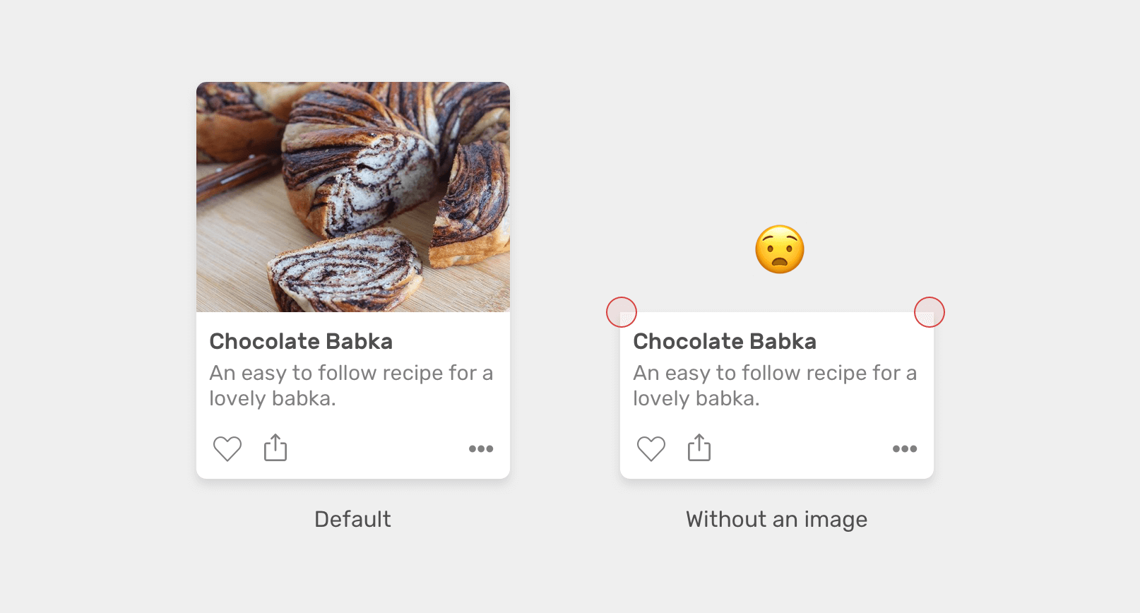 Let’s go back a bit for the initial card example. We have two variations, one with an image and the other without one.