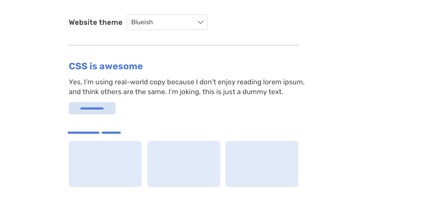 And when we select another option from the list, here is what’s happening in CSS. Based on the selected option, the CSS variables will be changed.