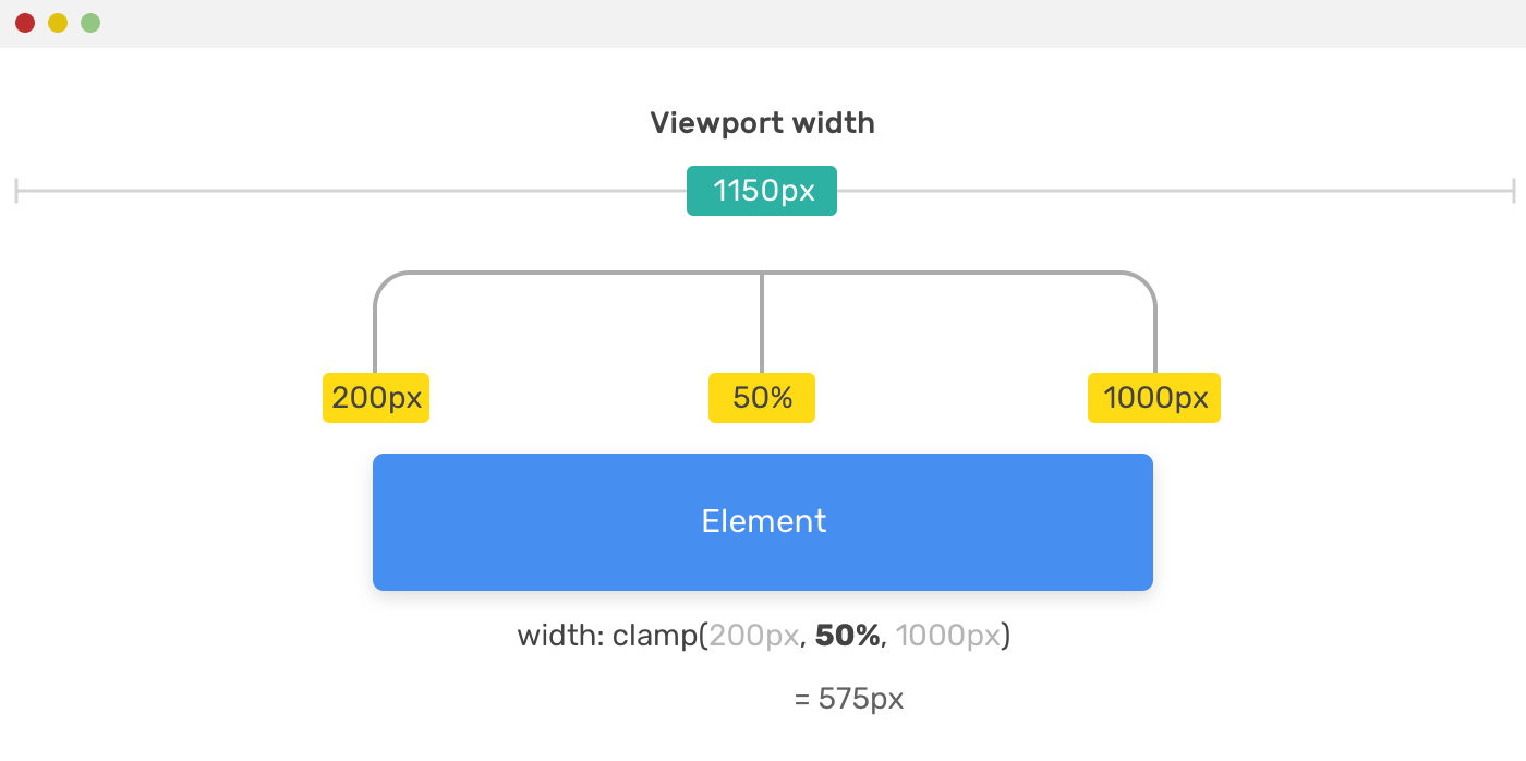 We have an element with a minimum width of 200px, a preferred value of 50%, and a maximum value of 1000px. Let’s visualize that!