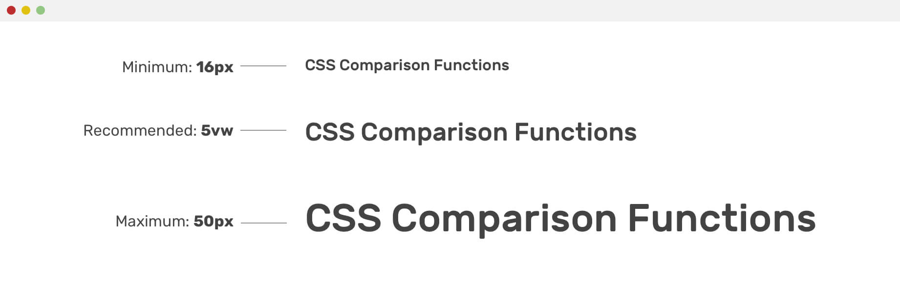 While CSS comparison functions provide us with a new way to make more dynamic web pages, we need to be more careful about how to use them. For example, using min() to set a font-size is not enough as it will be too small for mobile. You should set a minimum and maximum values for things that are vital to the user experience.