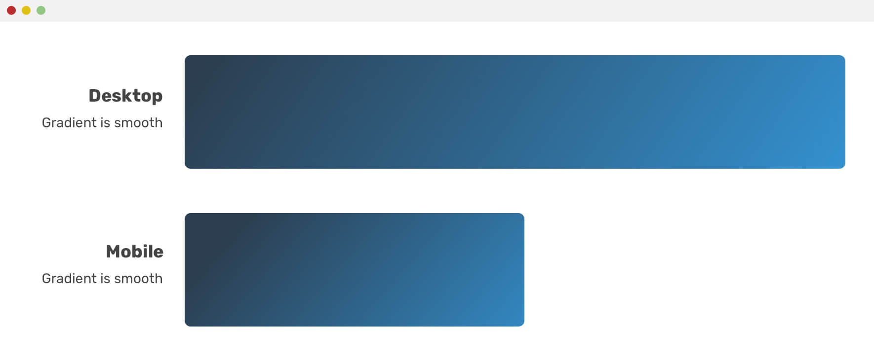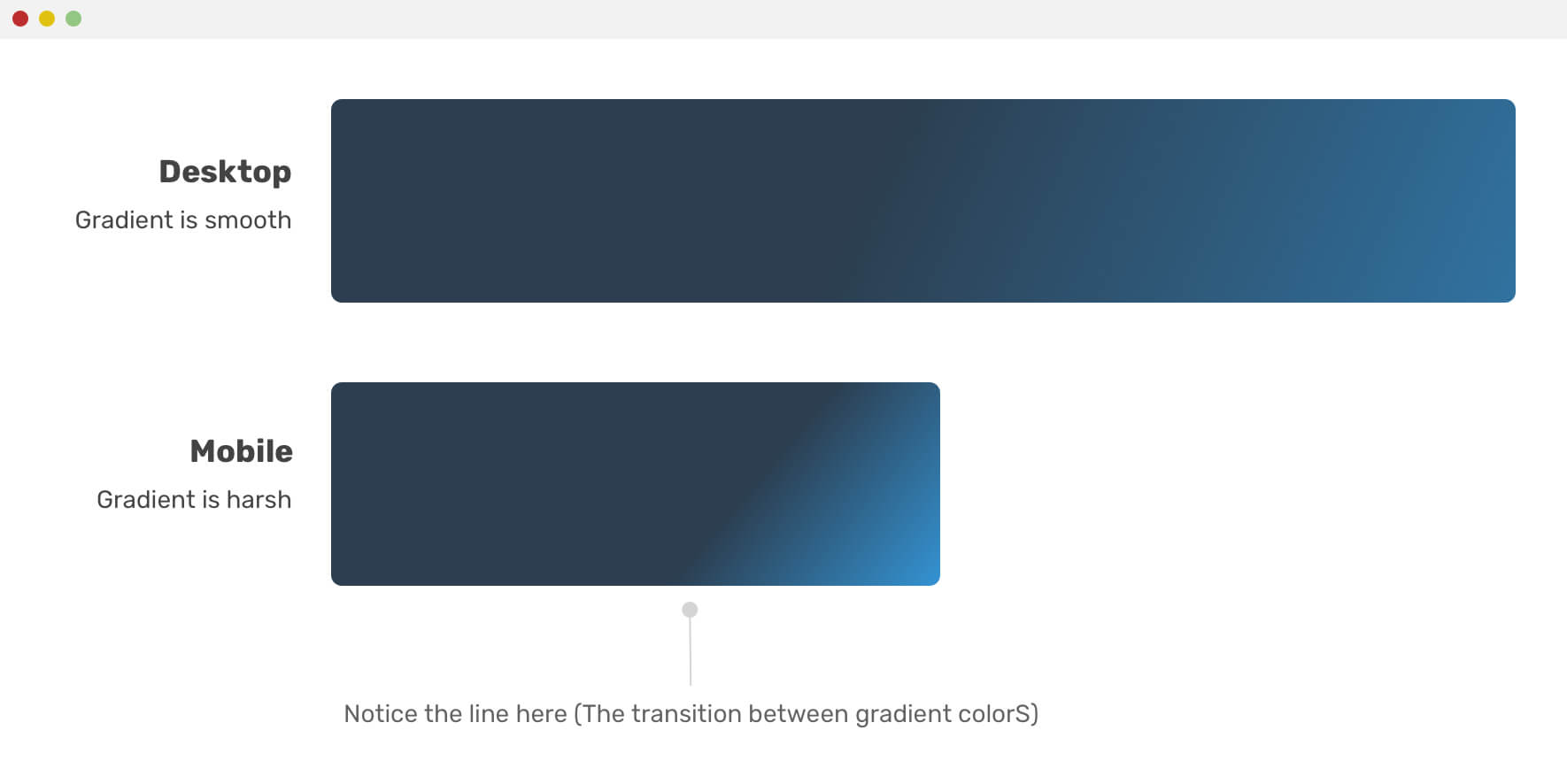 When using a gradient in CSS, you might need to tweak it a bit for mobile by making the transition between colors a bit smoother. Let me show you an example. We have the following gradient: