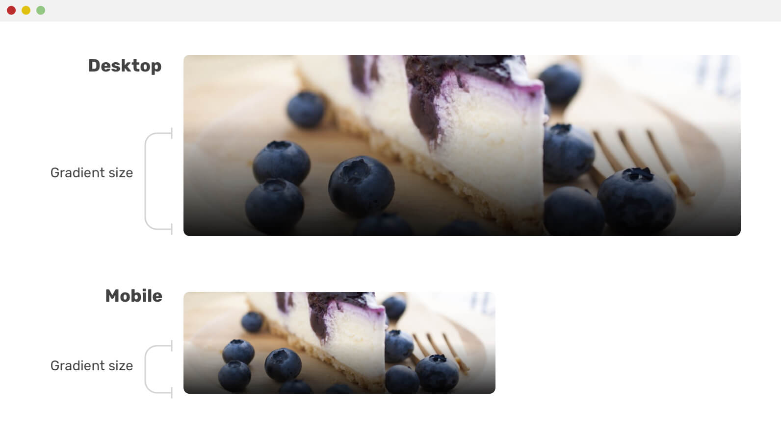 When you need to place text over a photo, you should have a gradient below it to make the text readable. Similar to the previous example, the gradient size should vary between small and large viewports. See the below figure: