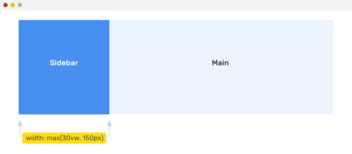 Usually, the sidebar of a page has a fixed with and the main width is flexible. We can enhance the sidebar and make it more dynamic and occupy more space if the viewport is large enough. To achieve that, I need to set a minimum width for it using max() function.