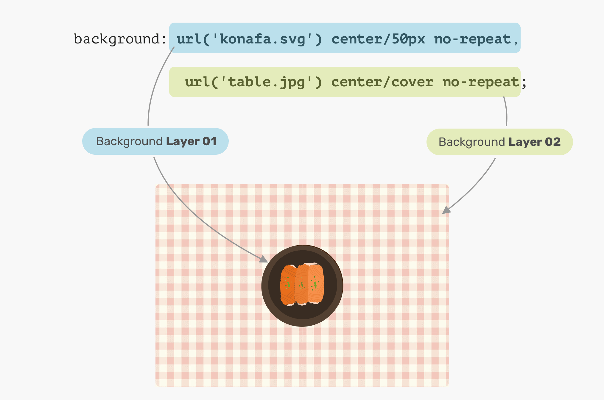 The background property can have one or more layers, separated by a comma. If the size of multiple backgrounds is the same, one of them will cover the other background.