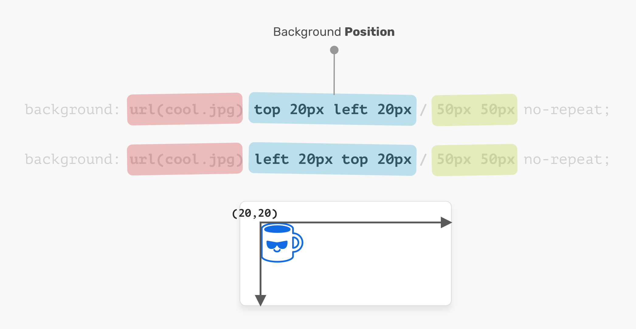 It’s worth mentioning that the value top left is the same as left top. The browser is smart enough to determine which one of them is for the x-axis, and which is for the y-axis.