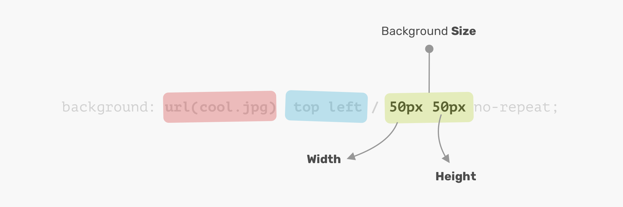 In the figure above, the background-position is followed by the background-size. It can’t work the other way around! In other words, the following CSS is invalid: