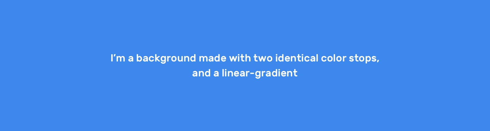 Say you want to draw two rectangles with CSS backgrounds, how would you do it? Thankfully, it’s fairly easy with CSS gradients. When a linear-gradient has the same color stops, the result will be a solid color. That’s it!
