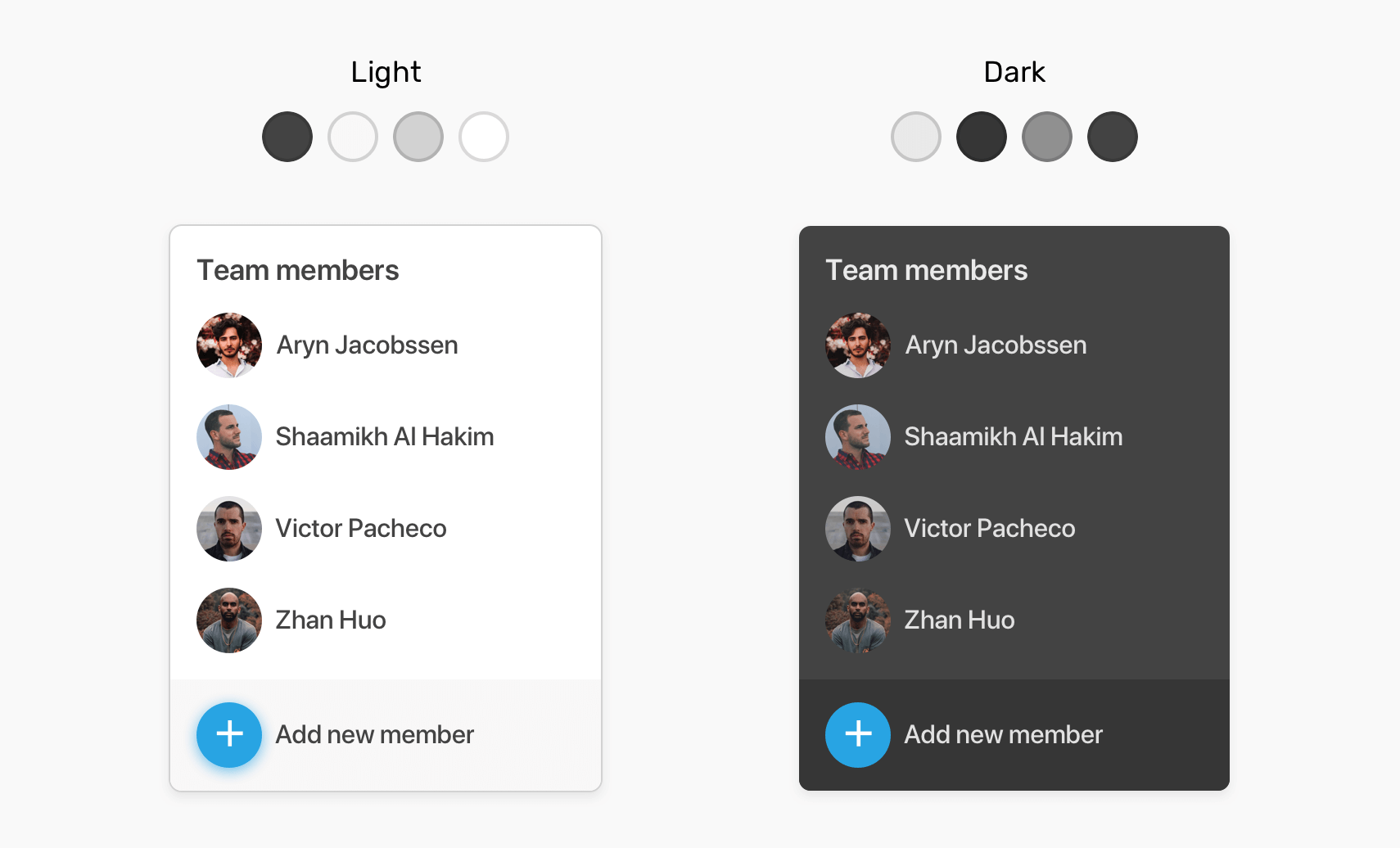 We might have variations of the avatar. I set the default value to 1, and so the default size is (30px * 30px). Notice the different class variations and how changing the --size value results in changing the size of the avatar.